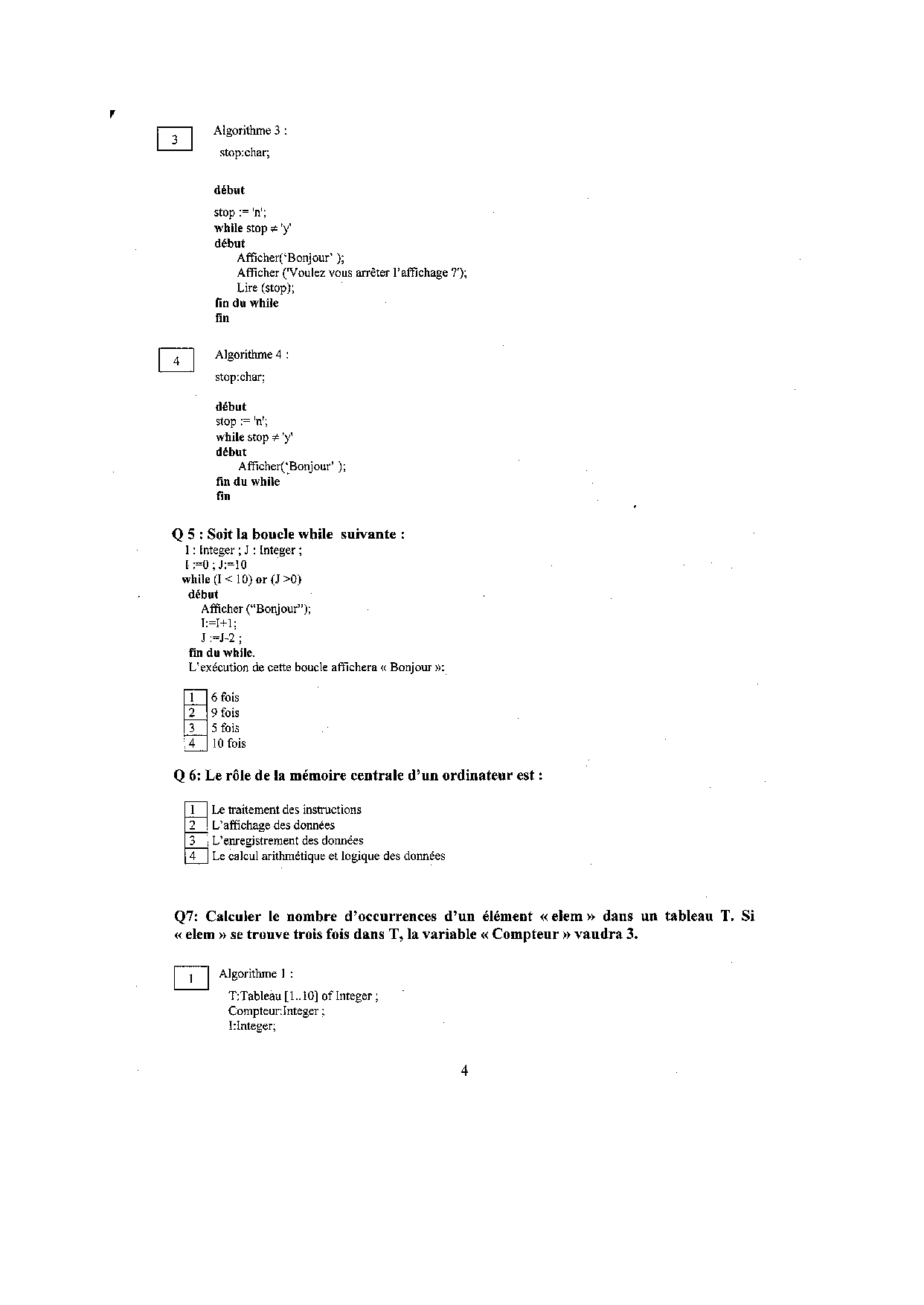Concours d'entrée INPT 2ème année 2003 - Informatique