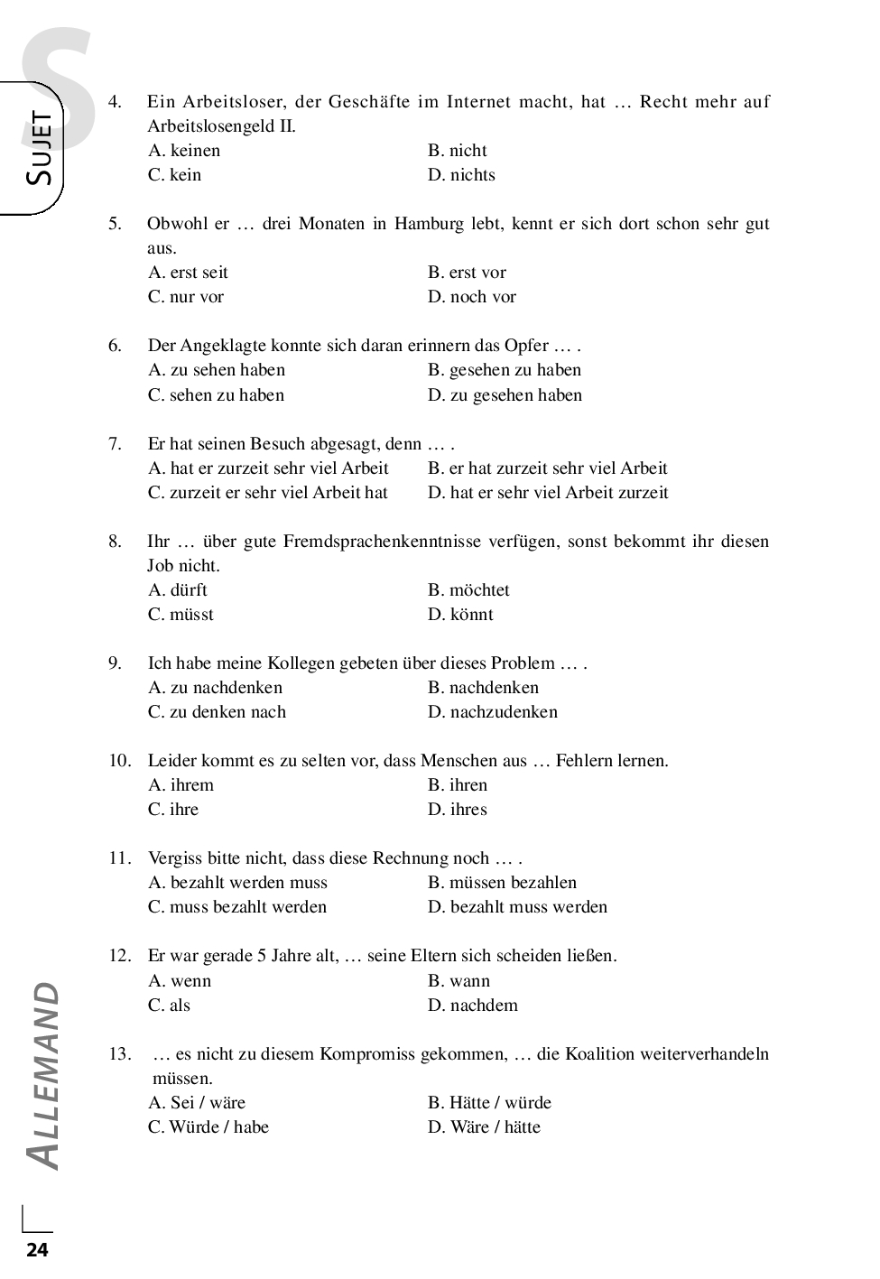 Concours SÉSAME 2008 - Allemand (Epreuve)