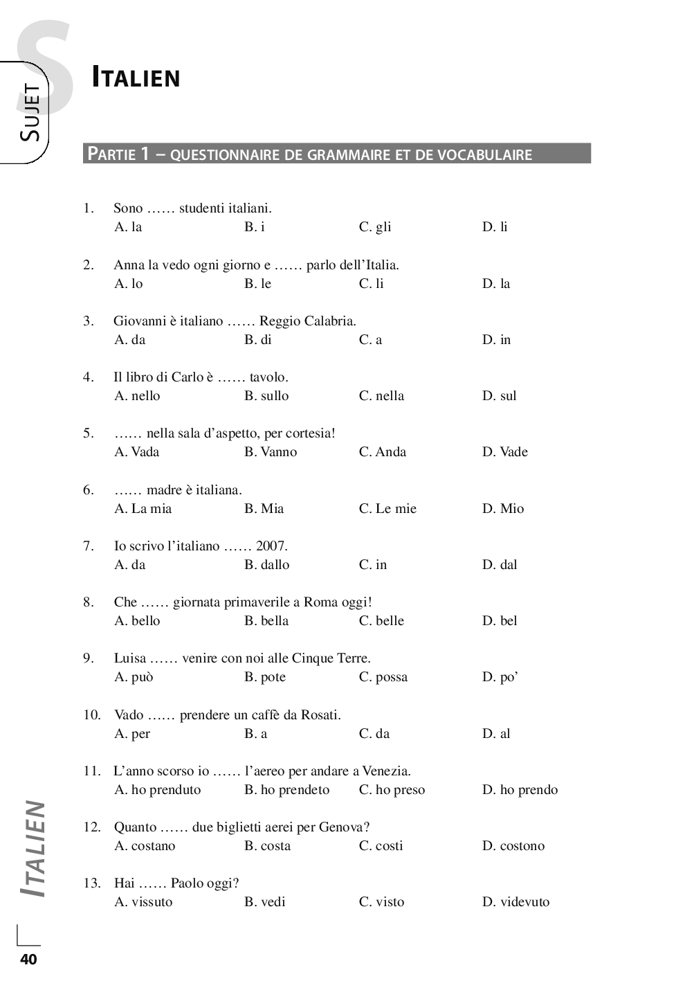 Concours SÉSAME 2009 - Italien (Epreuve)