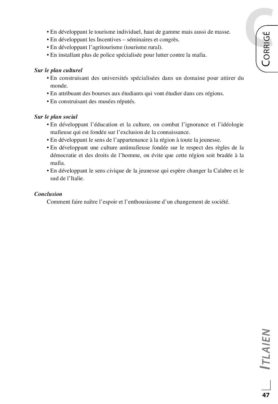 Concours SÉSAME 2009 - Italien (Corrigé)
