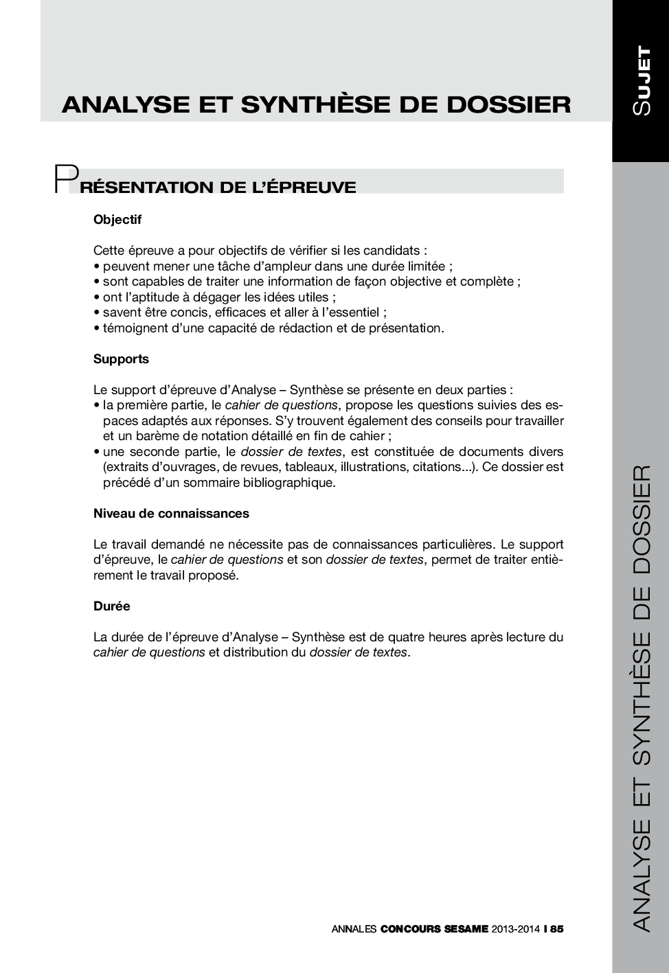 Concours SÉSAME 2013 - Analyse et synthèse de dossier (Présentation de l’épreuve)