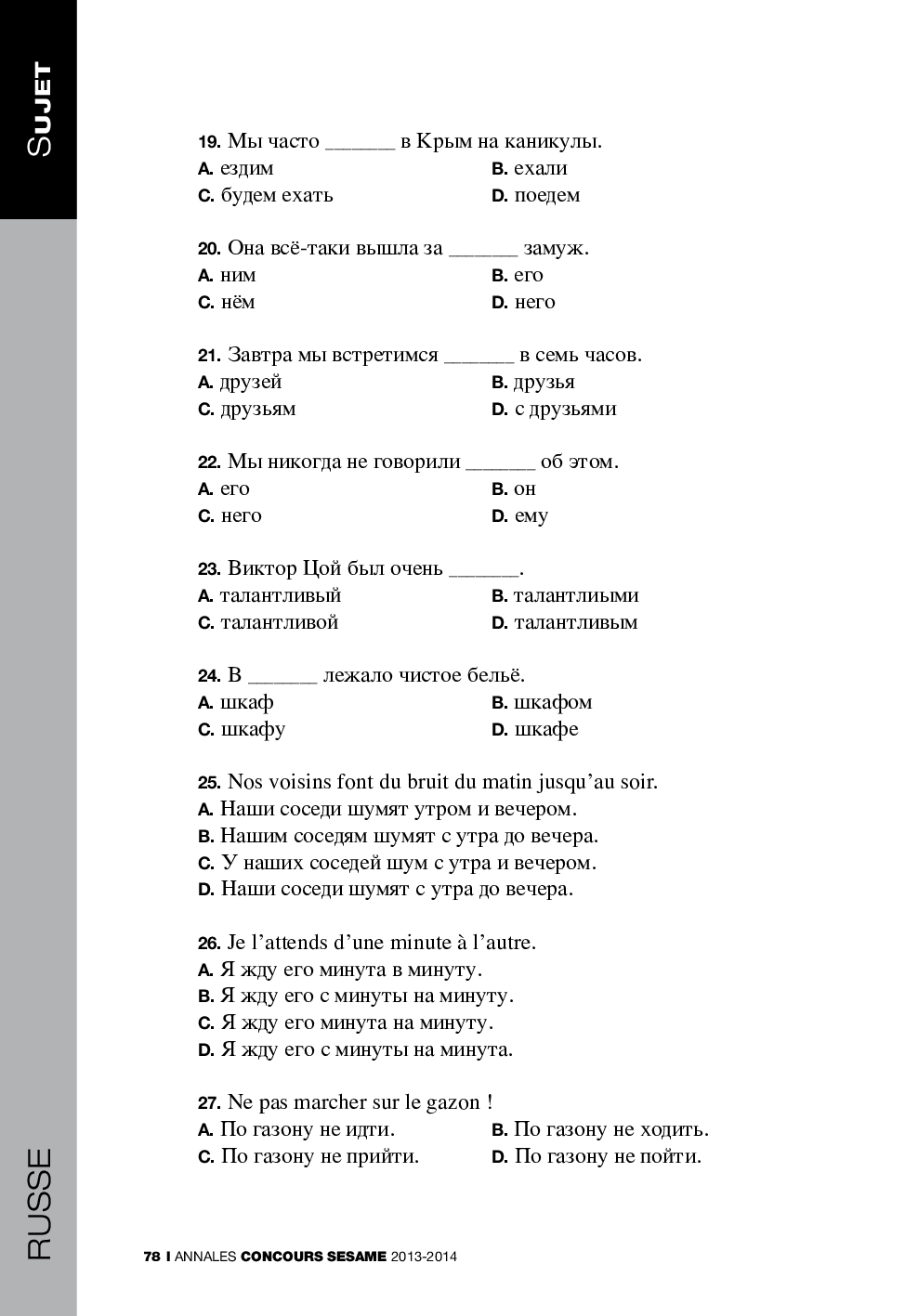 Concours SÉSAME 2013 - Russe (Epreuve)