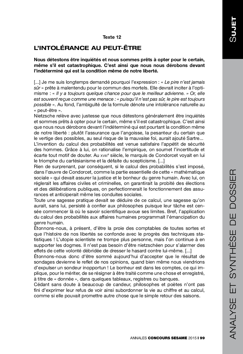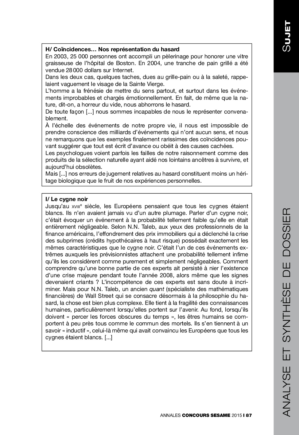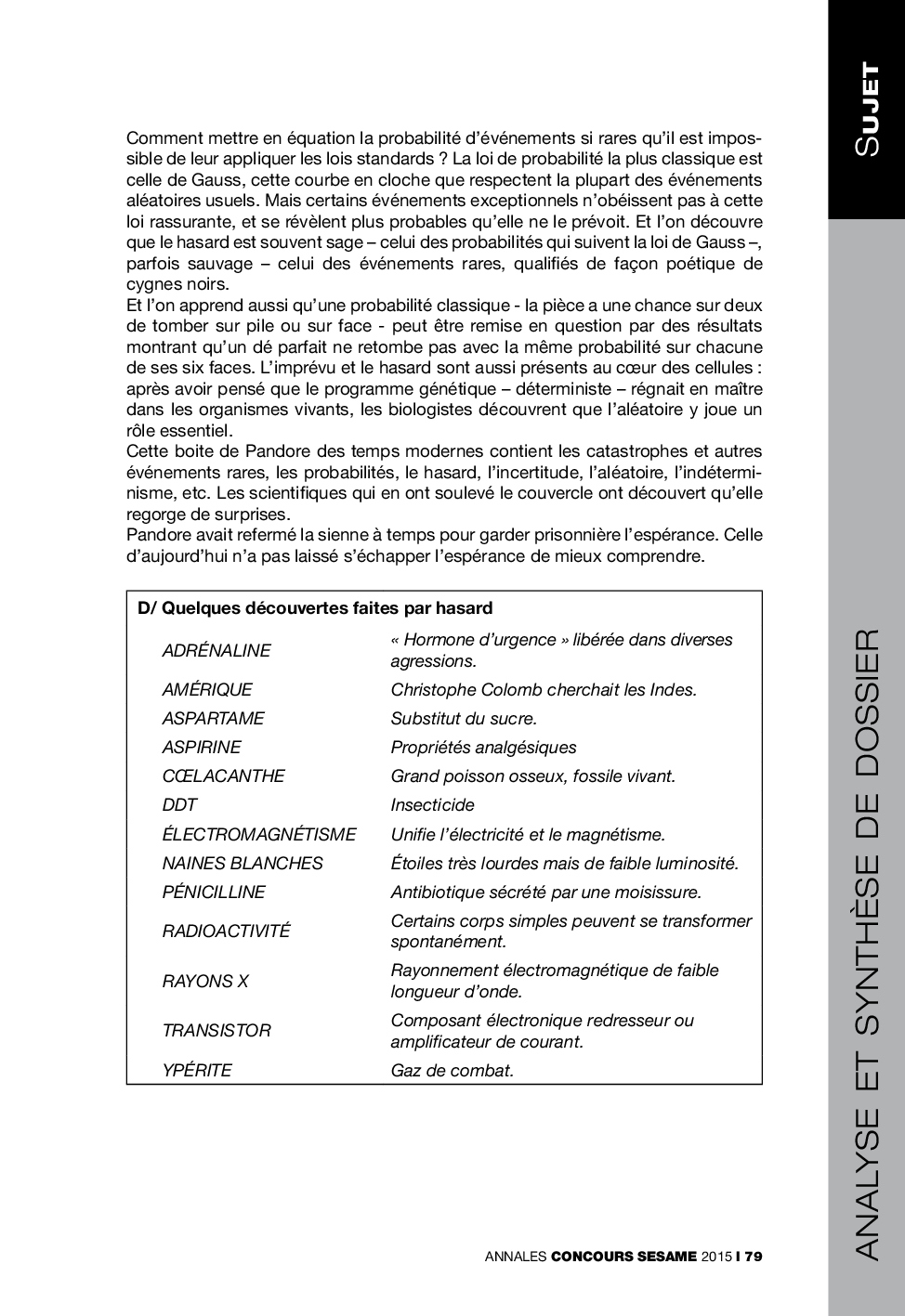 Concours SÉSAME 2015 - Analyse et synthèse de dossier (Dossier de textes)