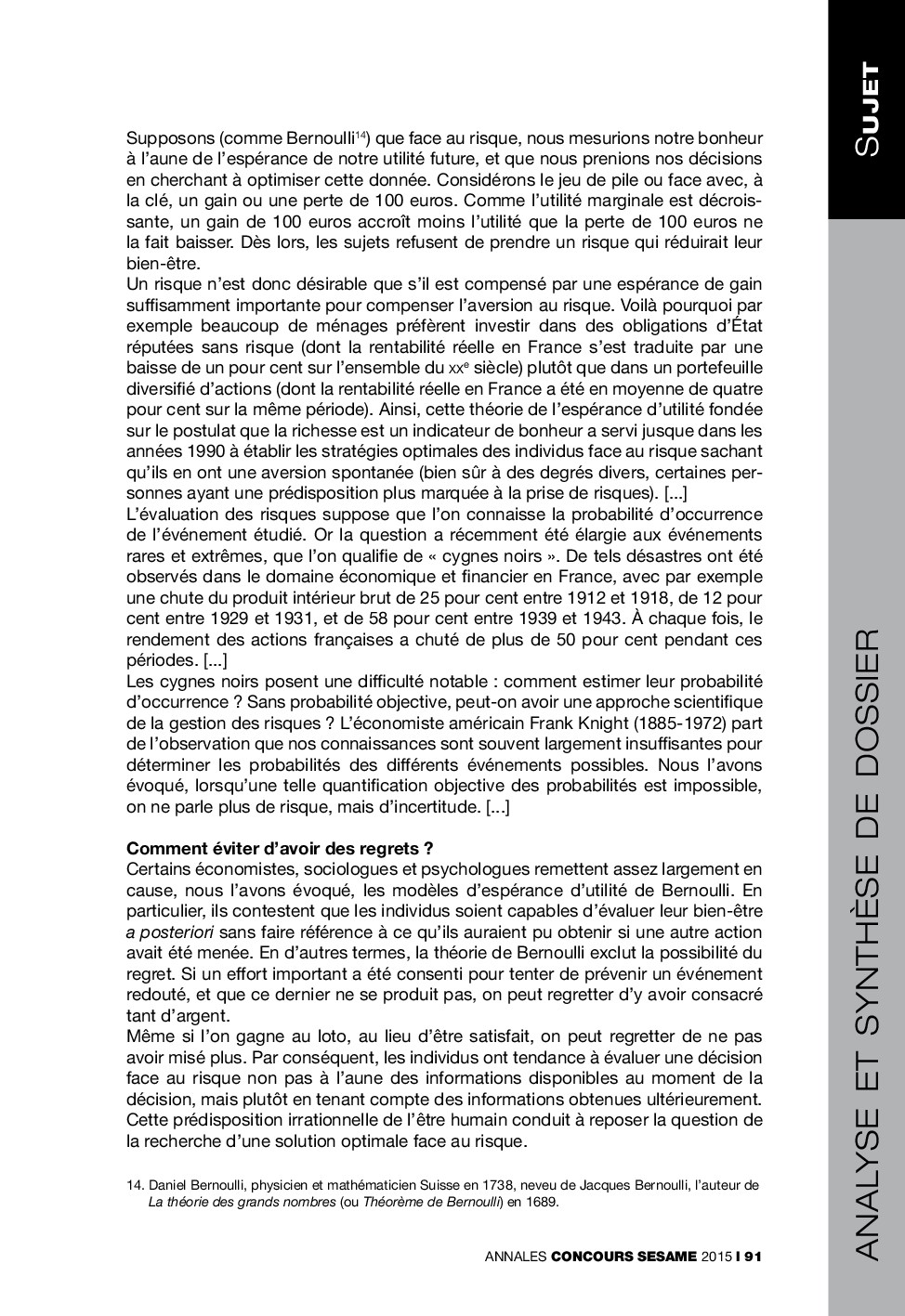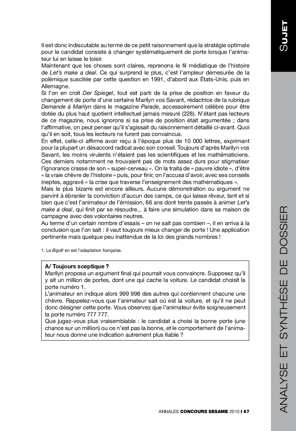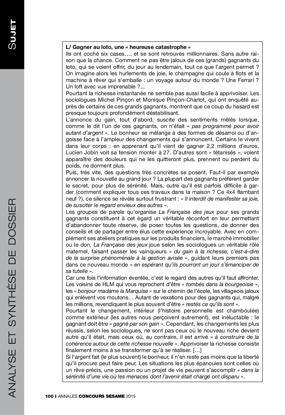 Concours SÉSAME 2015 - Analyse et synthèse de dossier (Dossier de textes)