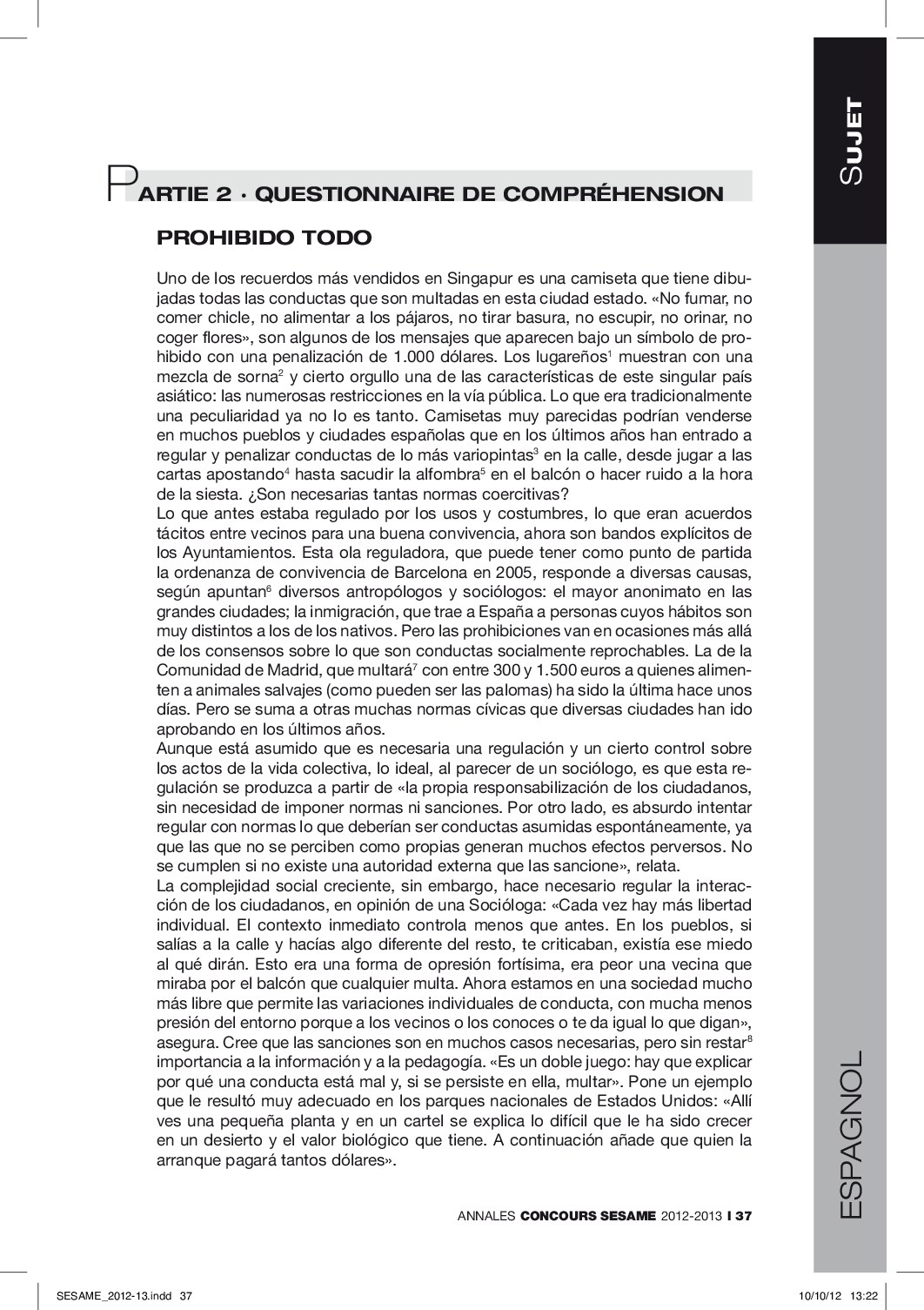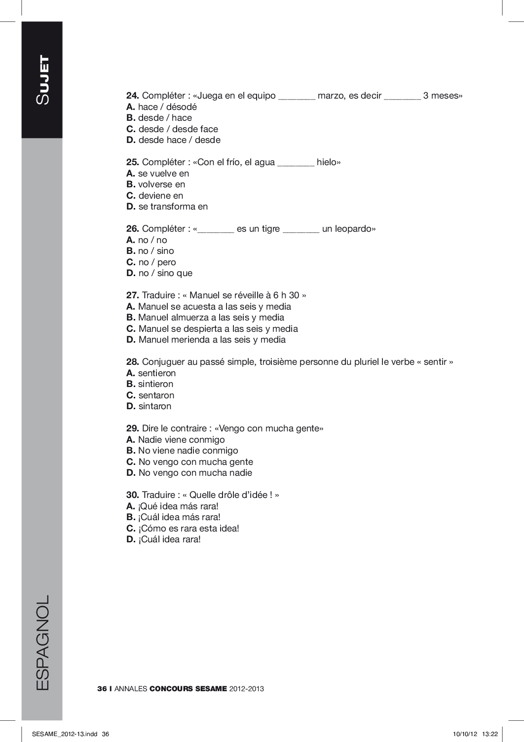 Concours SÉSAME 2012 - Espagnol (Epreuve)