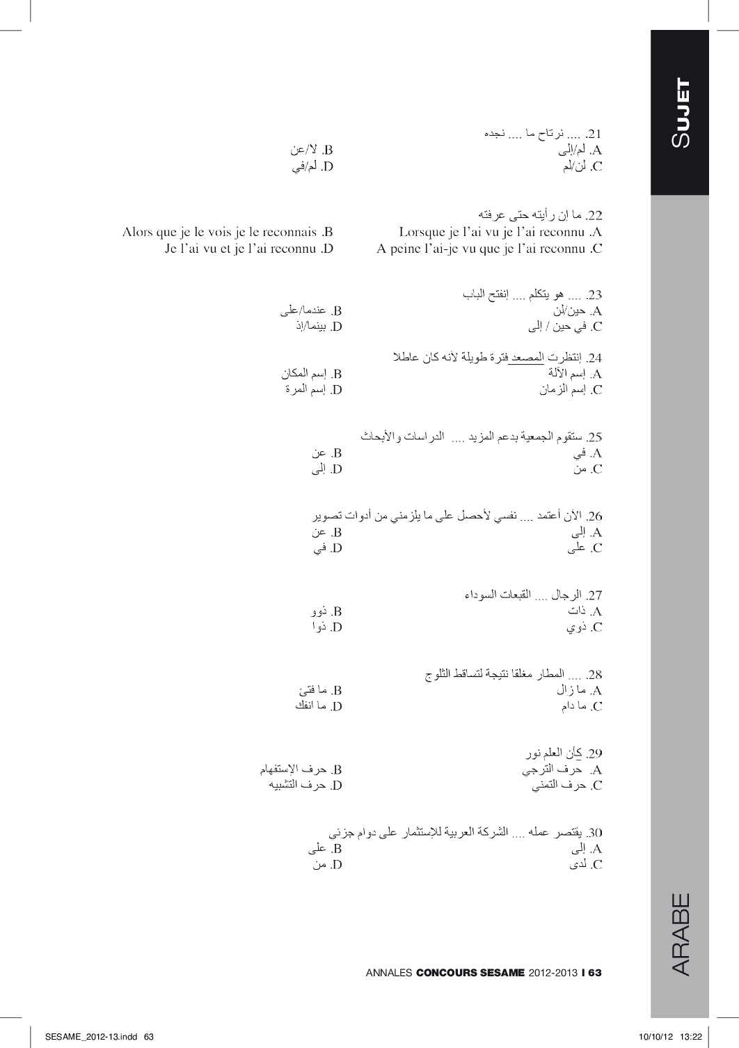 Concours SÉSAME 2012 - Arabe (Epreuve)