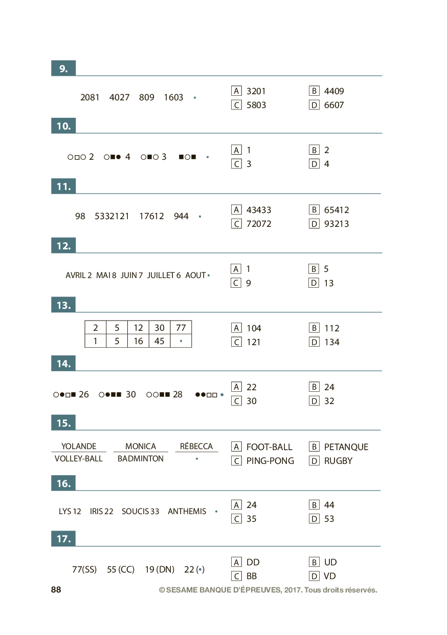 Concours SÉSAME 2017 - Logique générale (Epreuve)