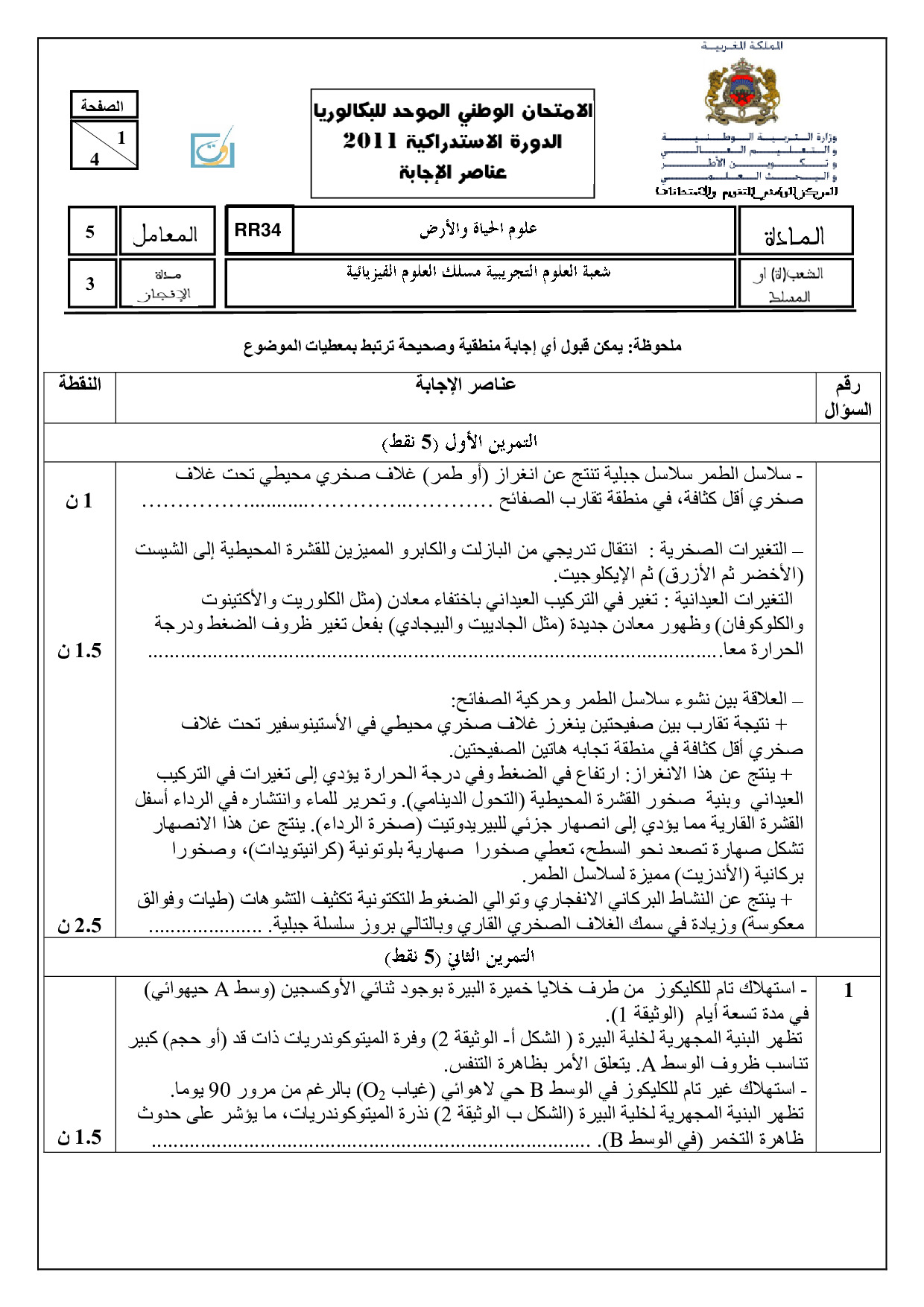 علوم الحياة والارض علوم فيزيائية 2011 الدورة الإستدراكية - التصحيح