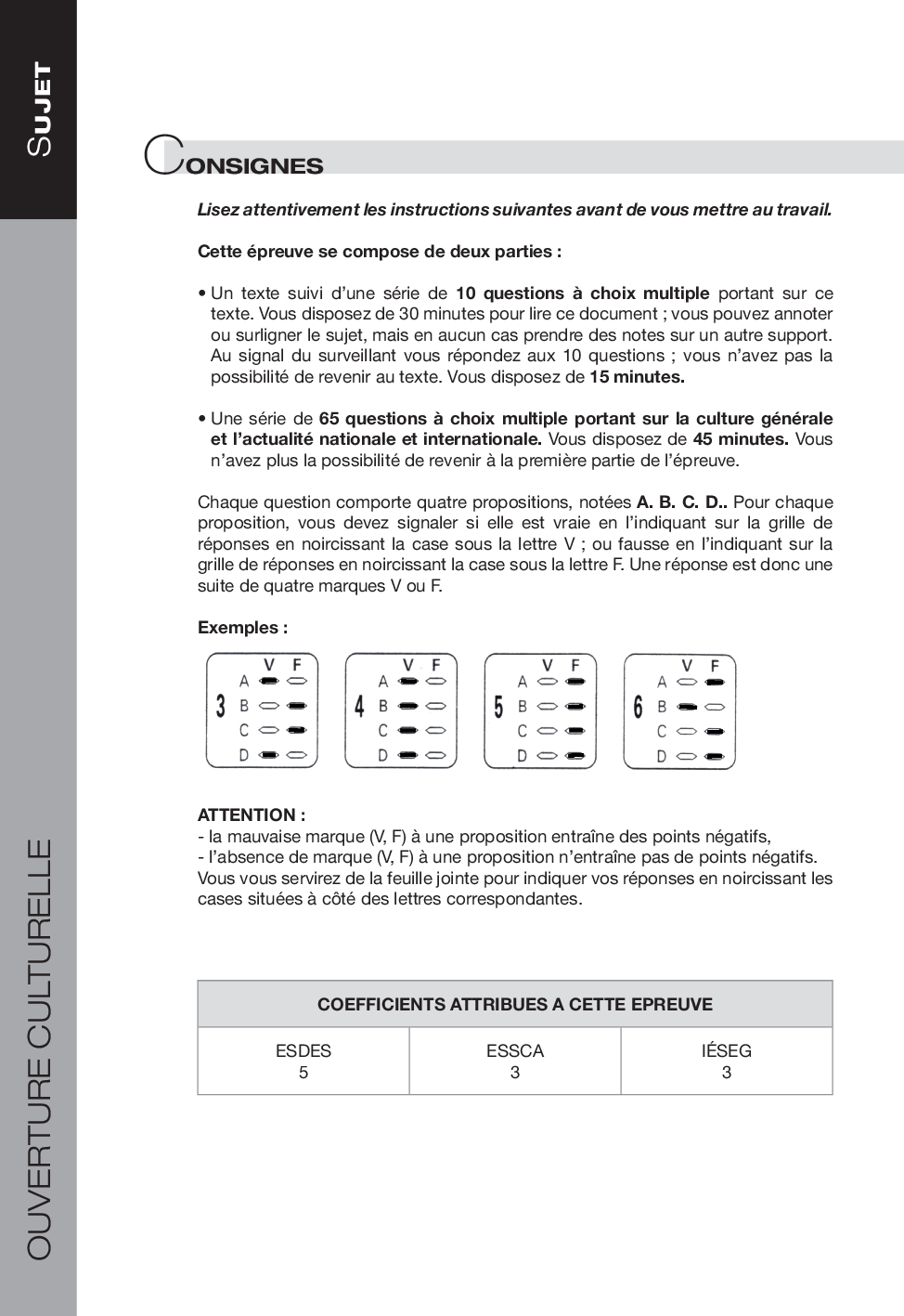 Concours ACCÈS 2011 - Ouverture culturelle (Sujet)