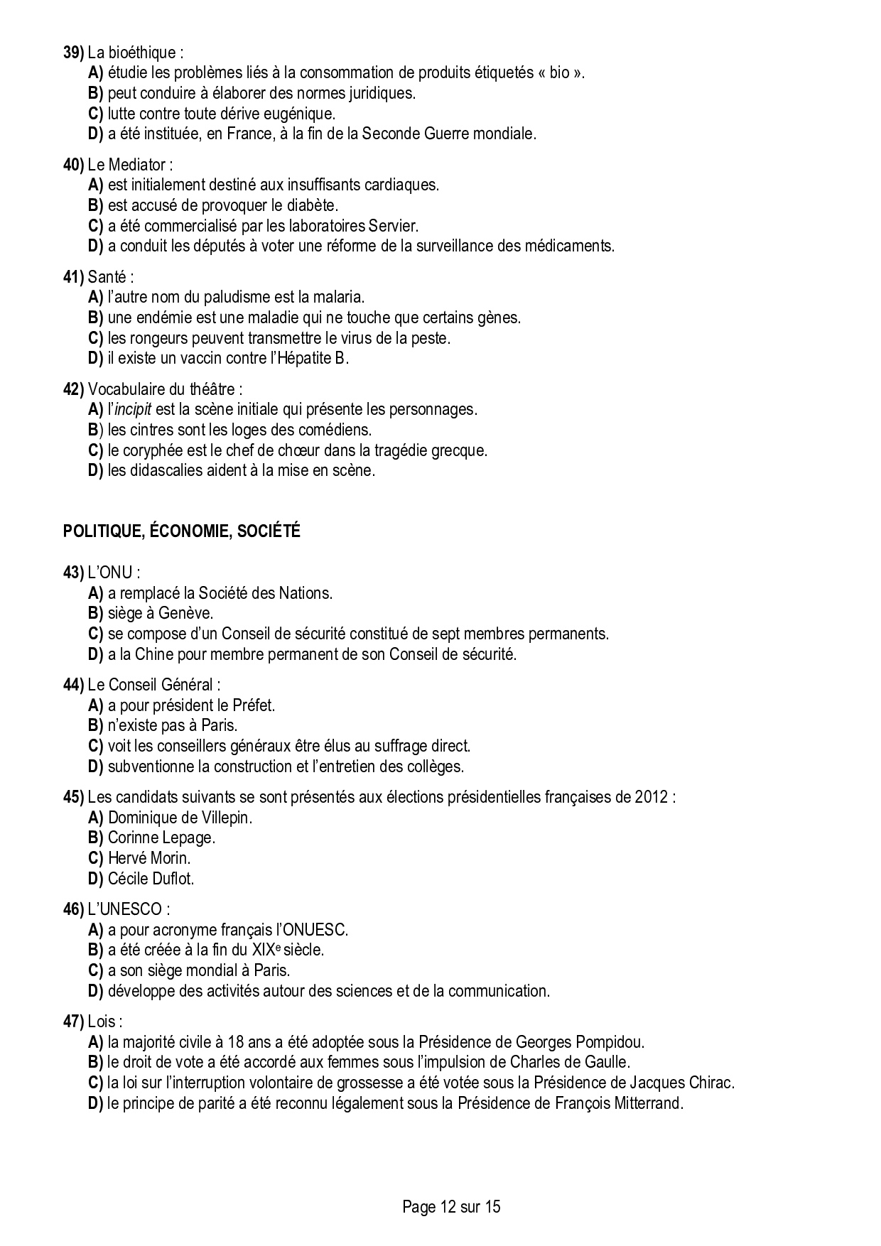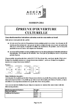 Concours ACCÈS 2014 - Ouverture culturelle (Sujet)