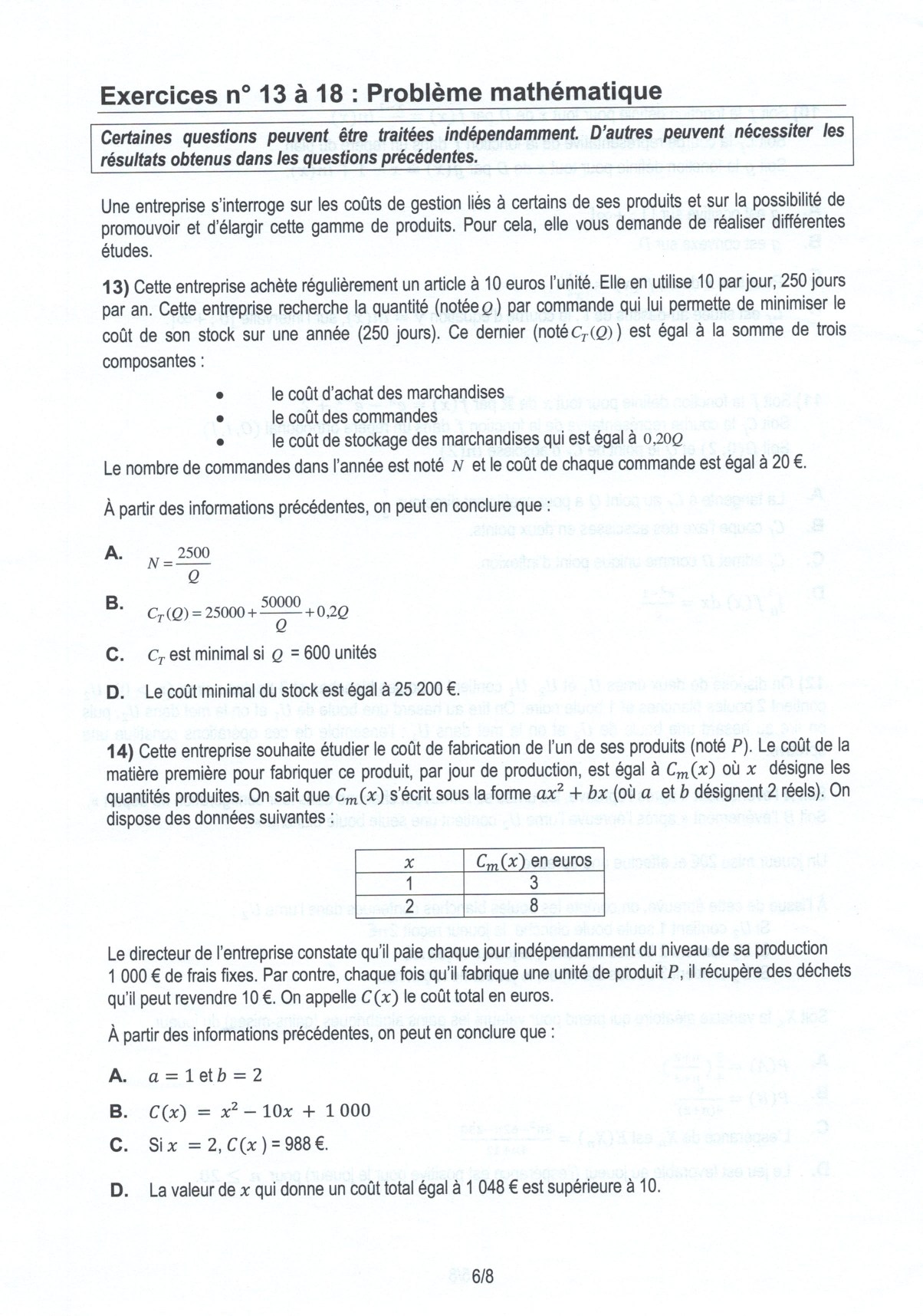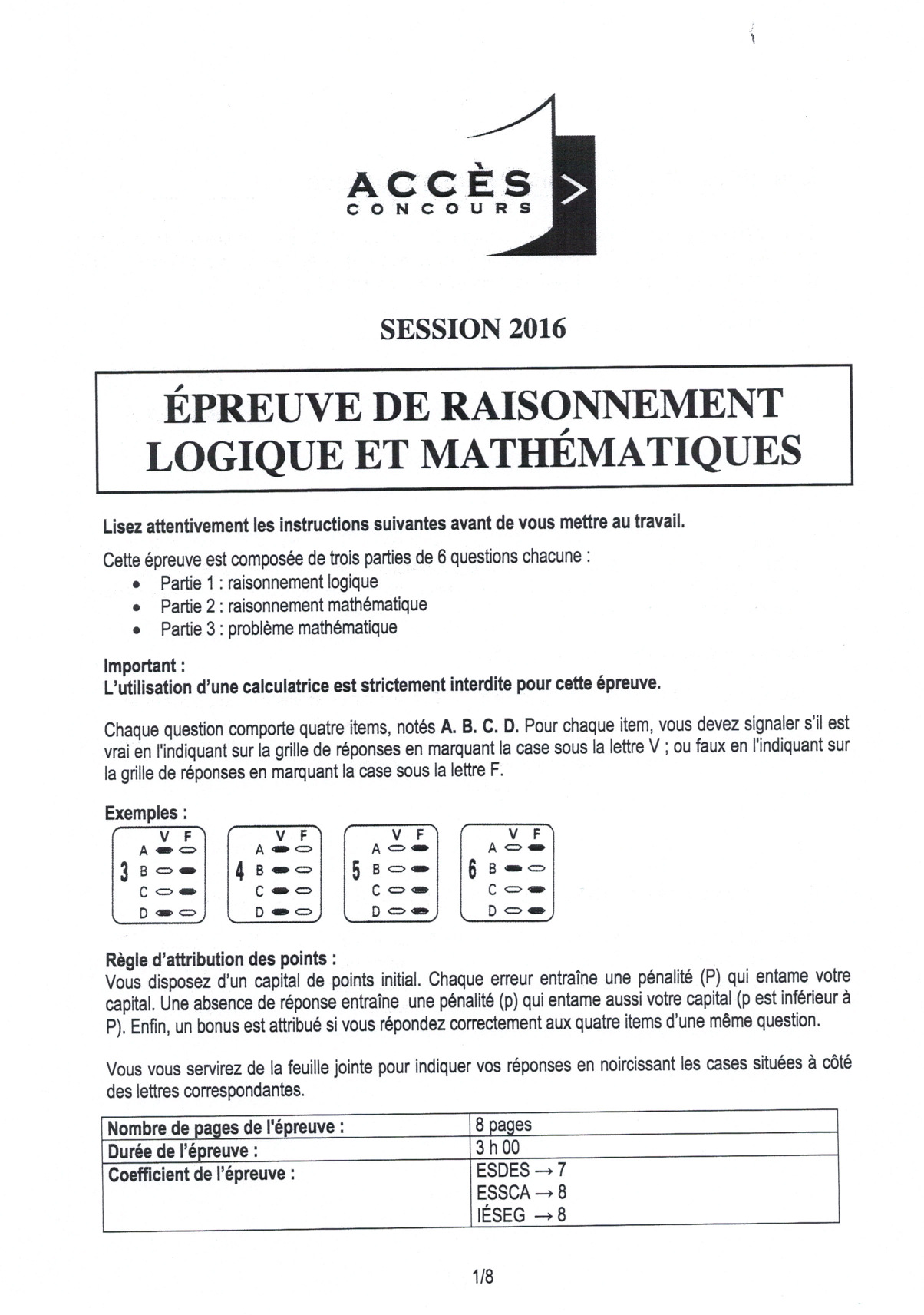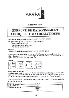 Concours ACCÈS 2016 - Raisonnement logique et Mathématiques (Sujet)