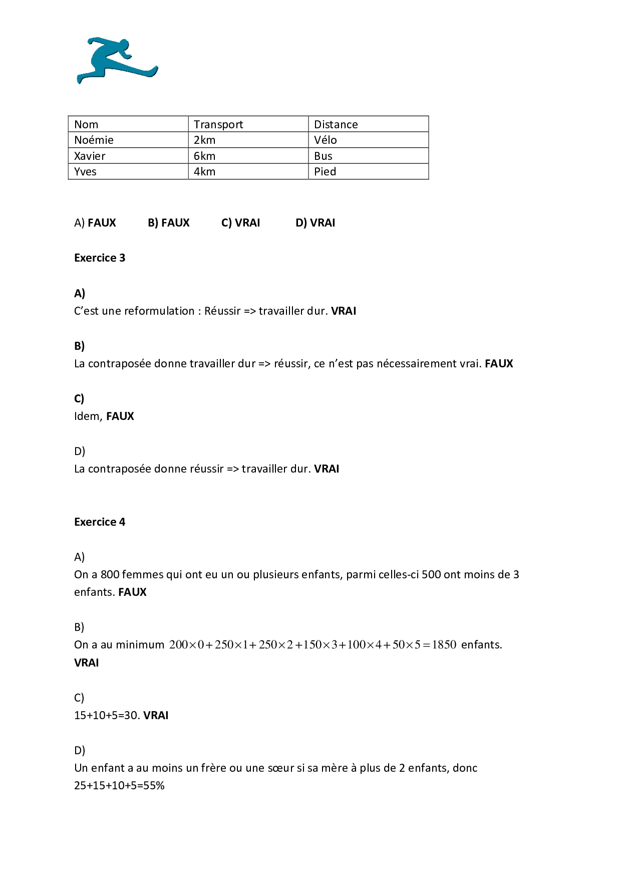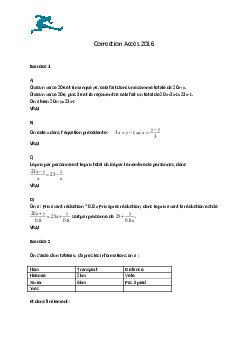 Concours ACCÈS 2016 - Raisonnement logique et Mathématiques (Corrigé)