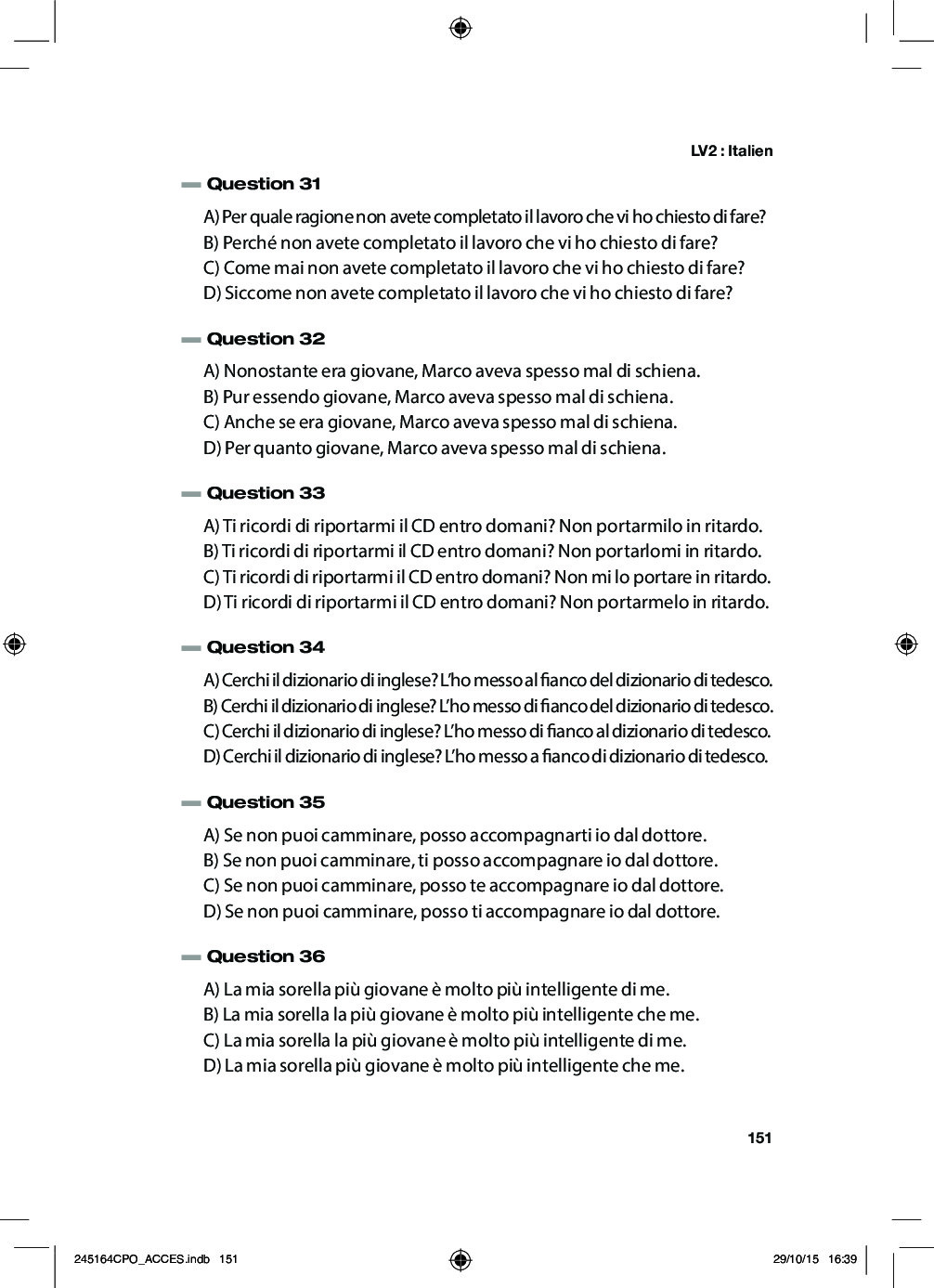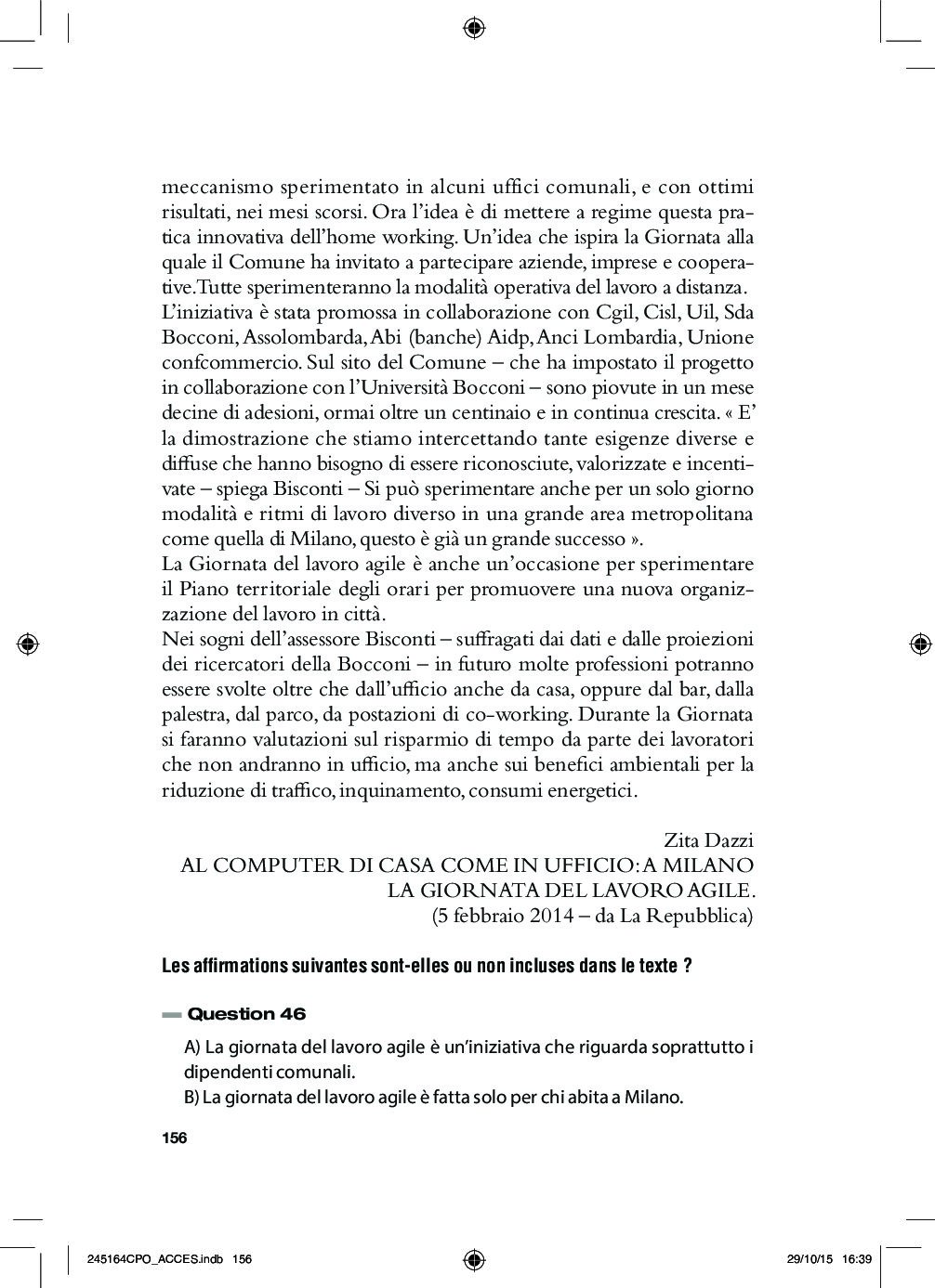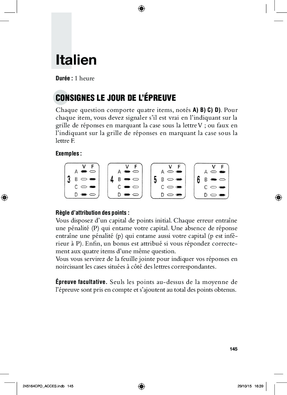 Concours ACCÈS 2015 - Italien (Sujet)