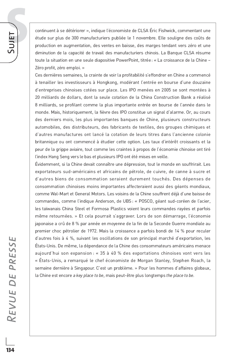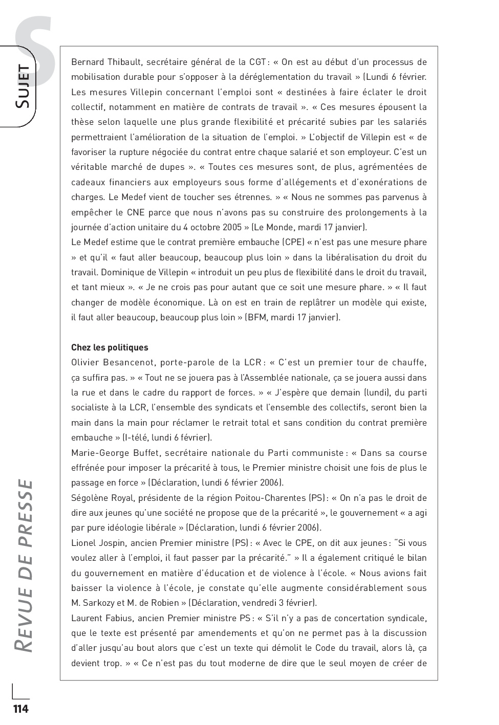 Concours PASS 2006 - Synthèse de revue de presse internationale (Sujet)