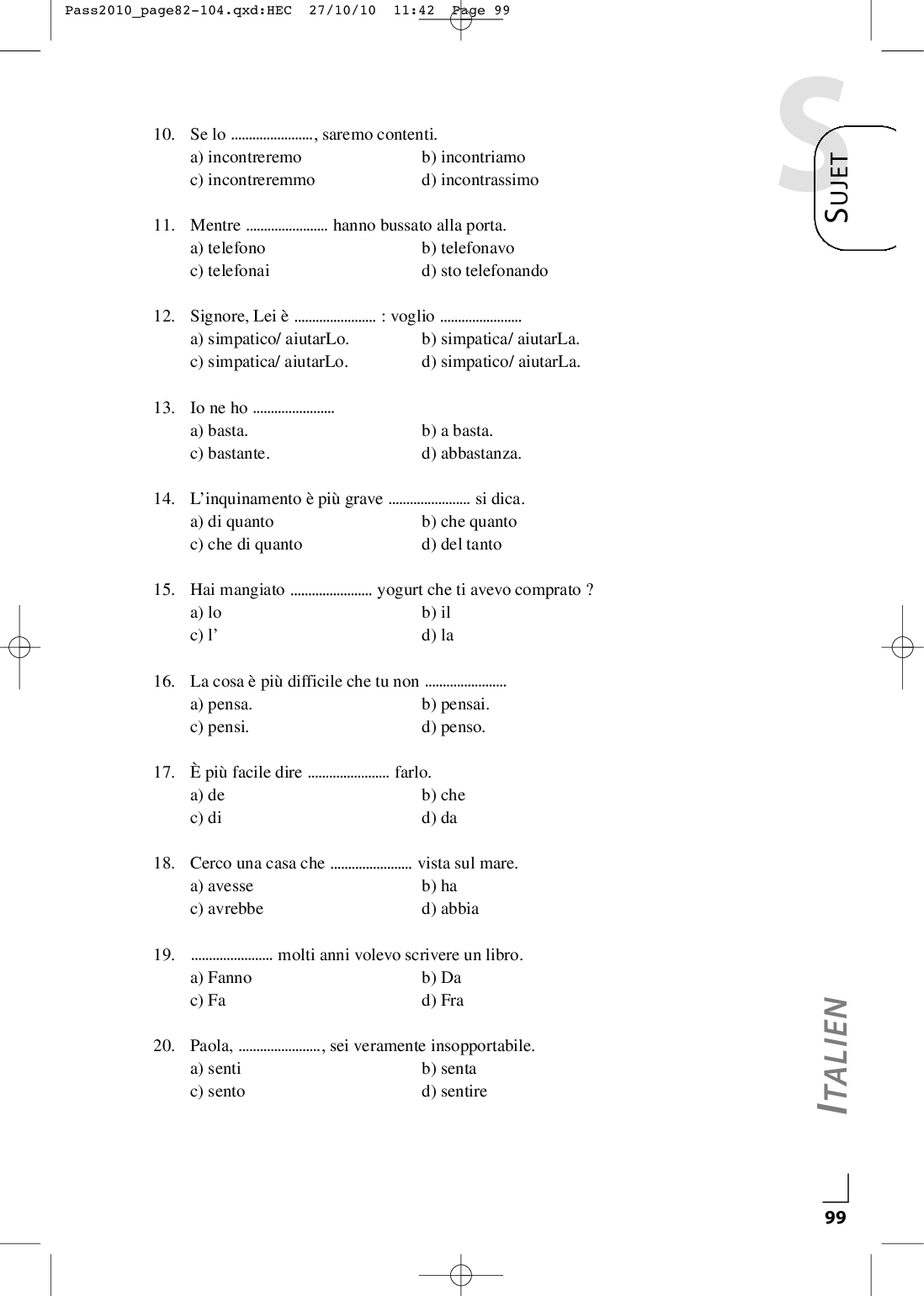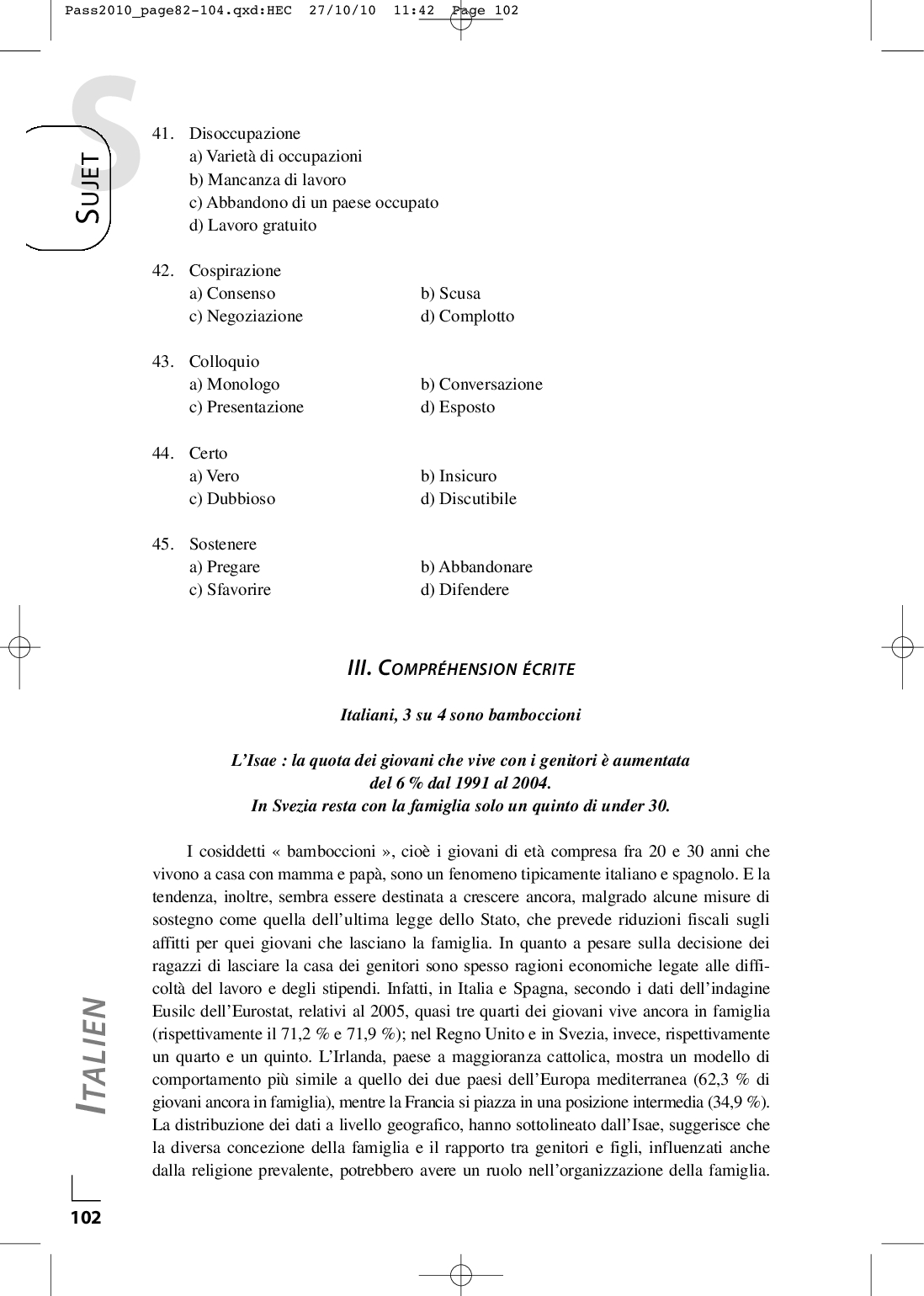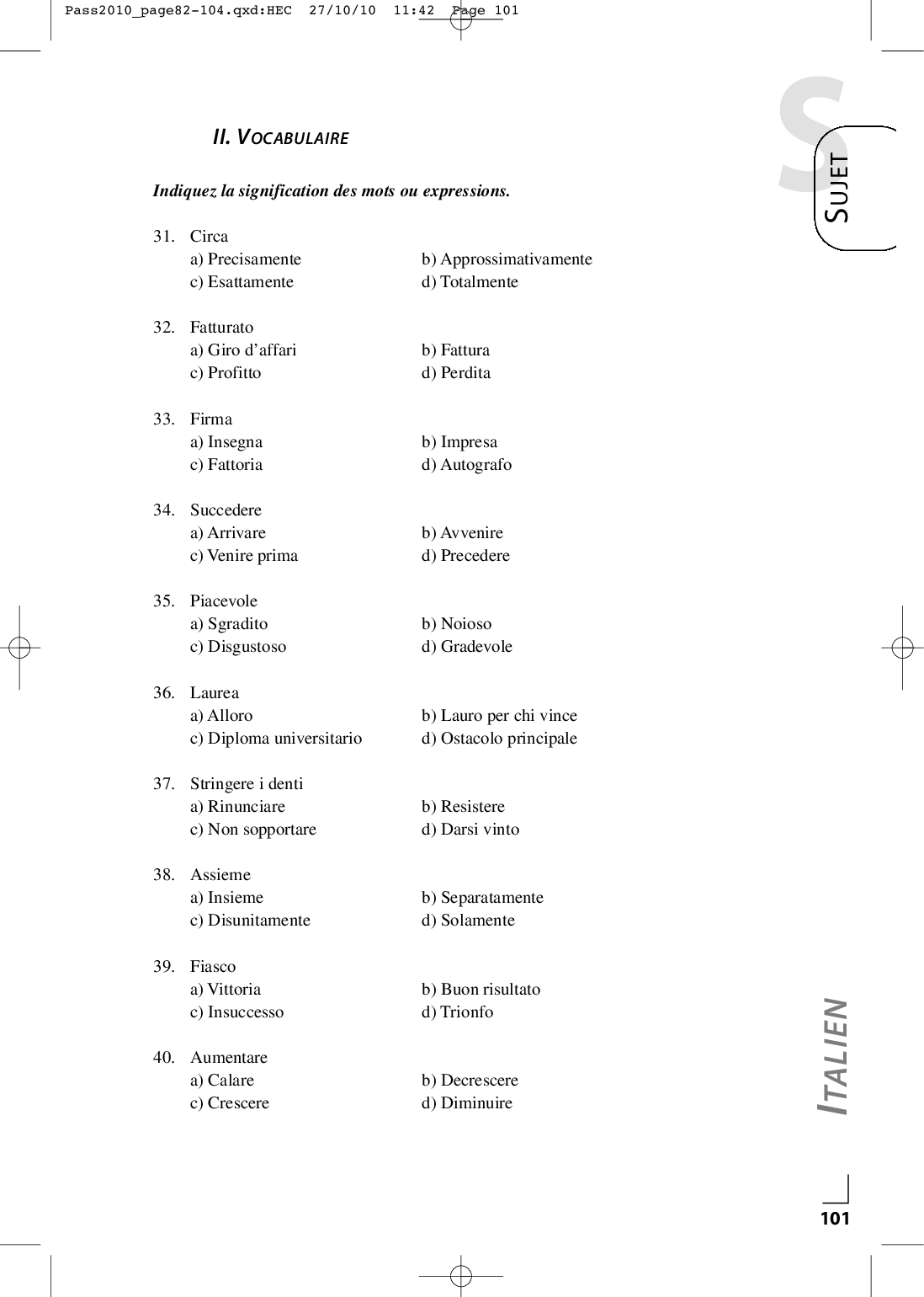 Concours PASS 2010 - Italien (Sujet)