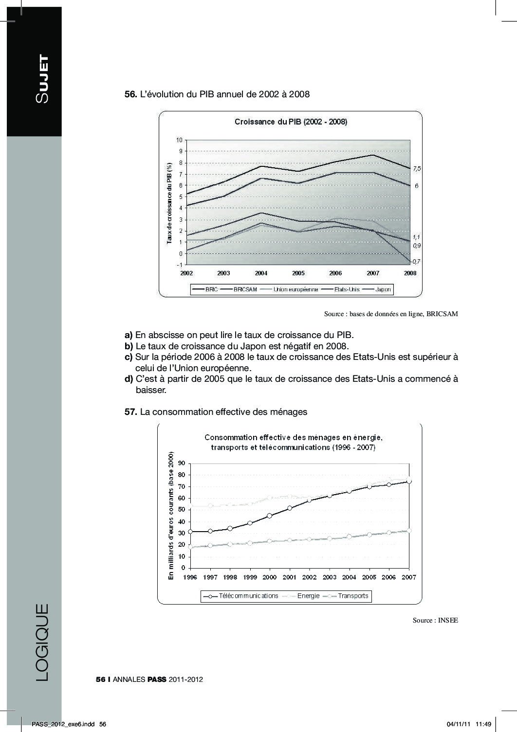 Concours PASS 2011 - Logique et analyse quantitative (Sujet)