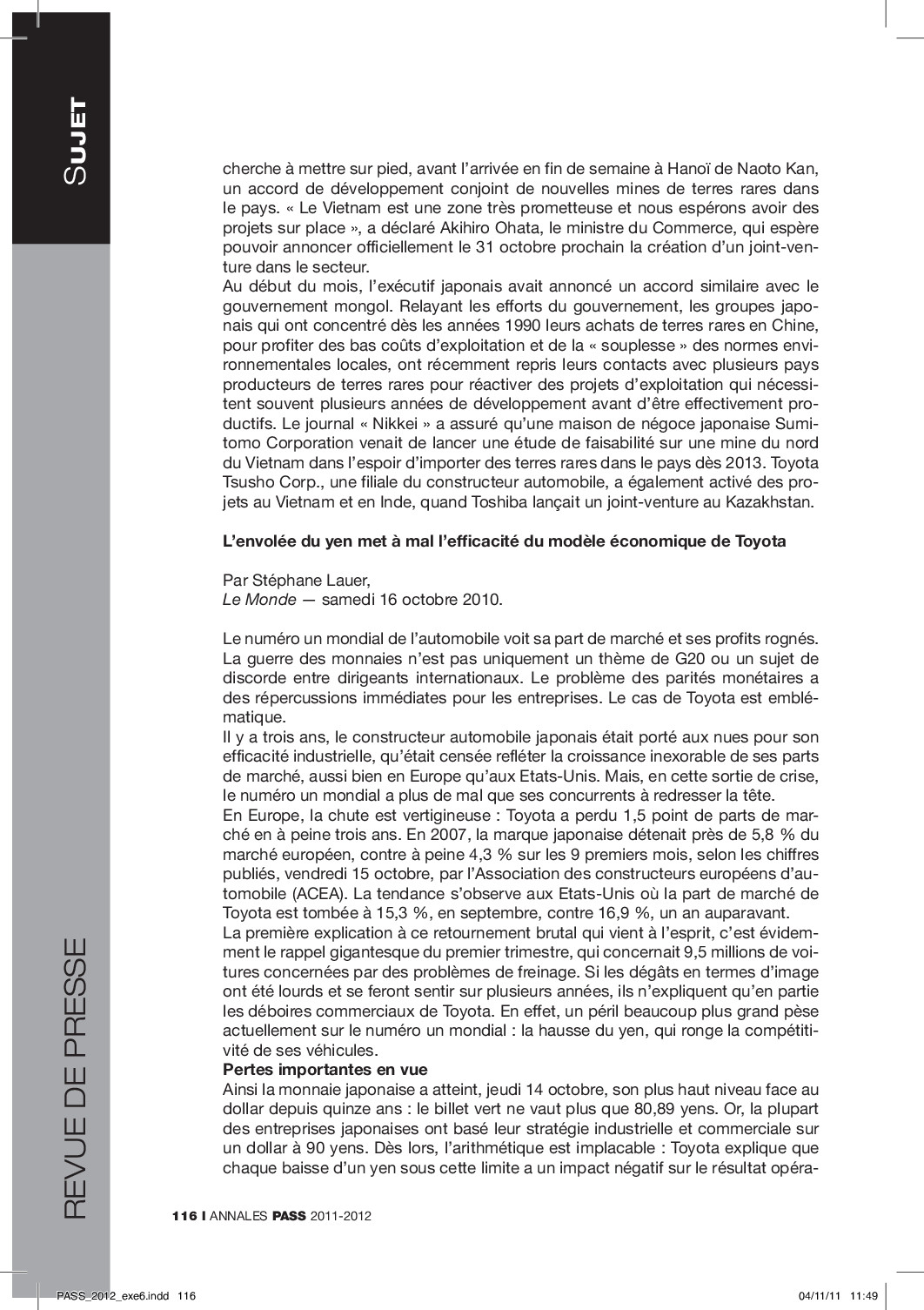 Concours PASS 2011 - Synthèse de revue de presse internationale (Sujet)
