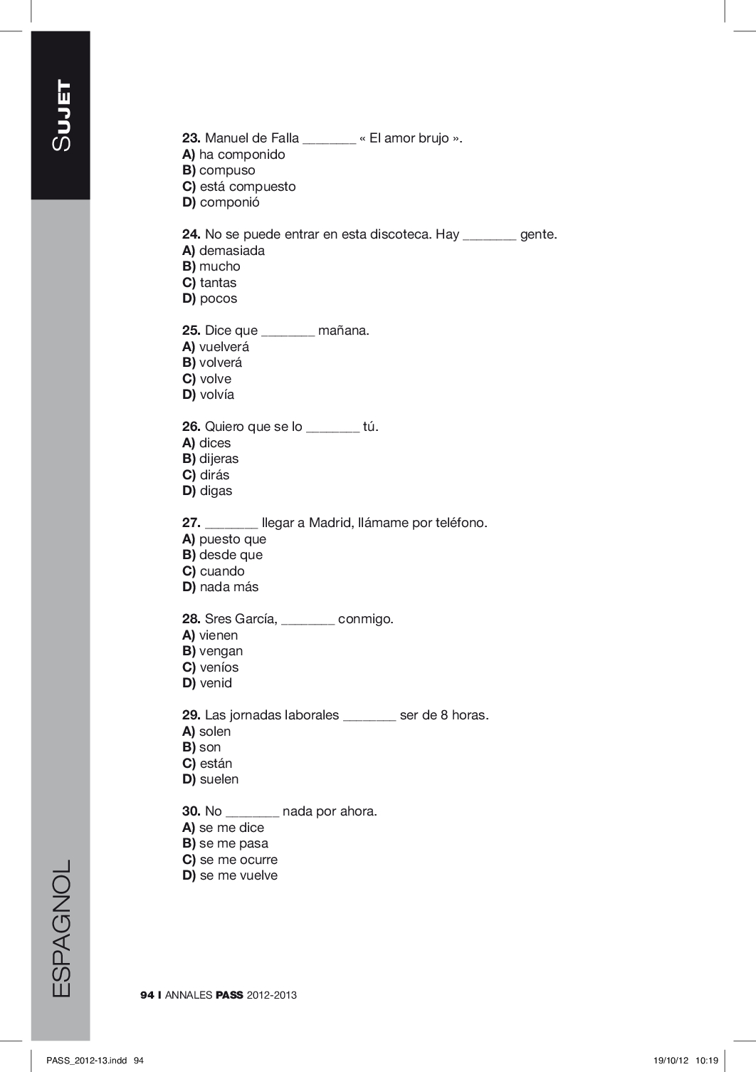 Concours PASS 2012 - Espagnol (Sujet)