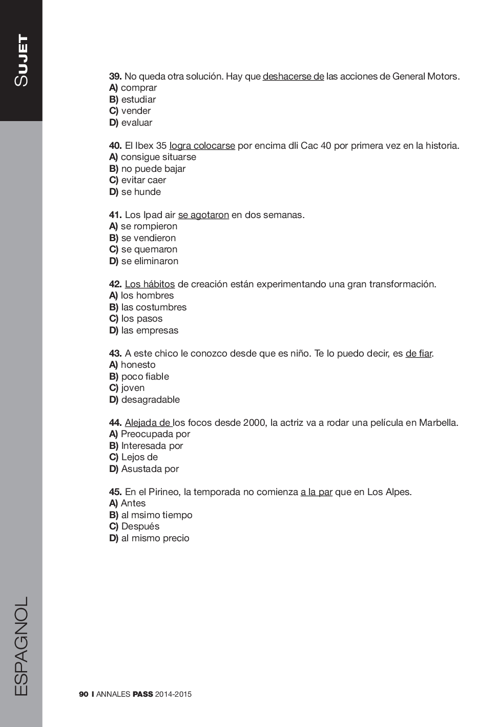 Concours PASS 2014 - Espagnol (Sujet)