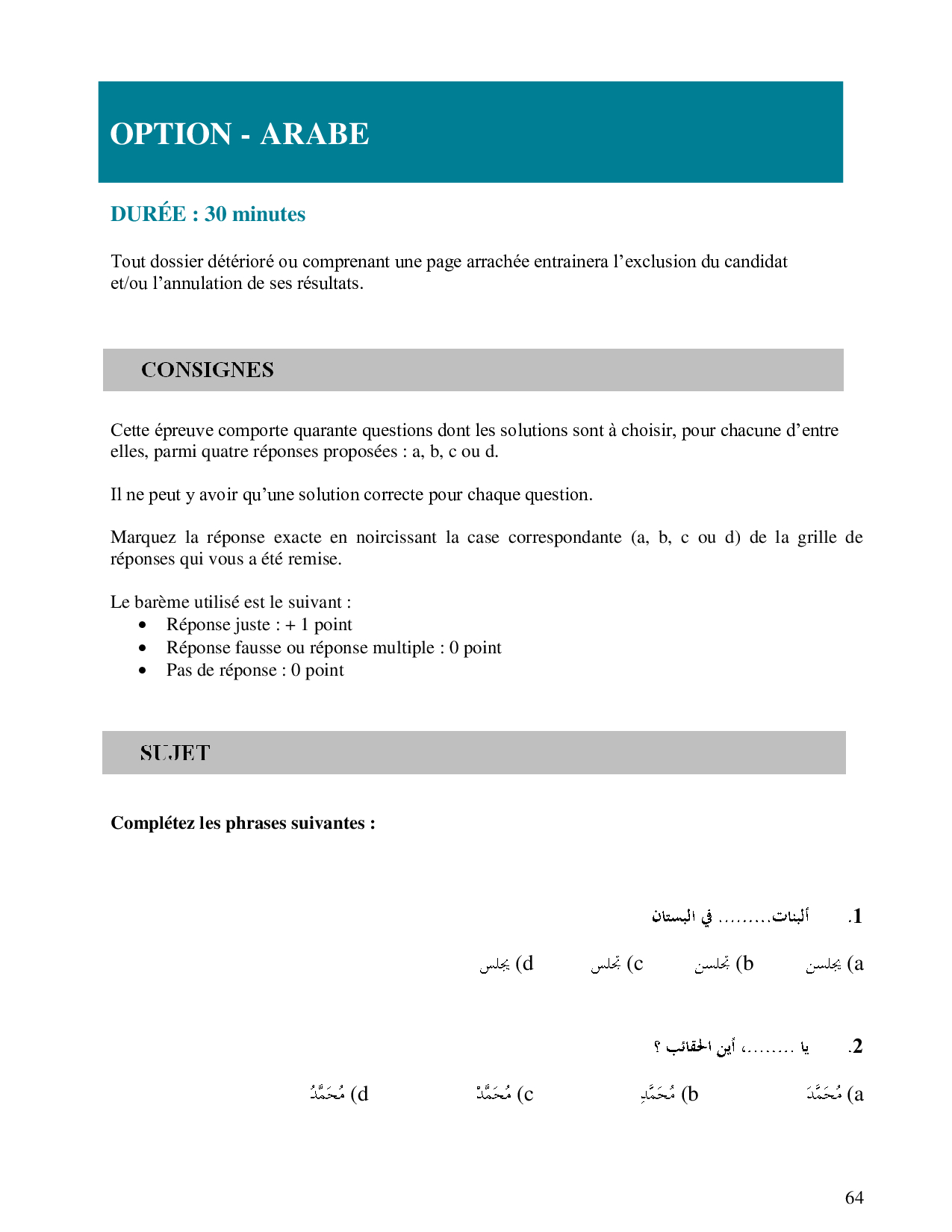 Concours TEAM 2013 - Arabe (Sujet)