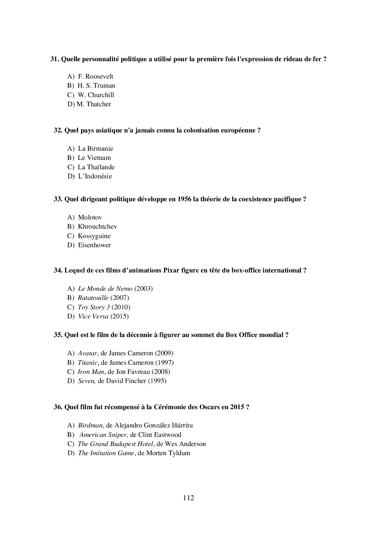 Concours TEAM 2016 - Culture internationale (Sujet)