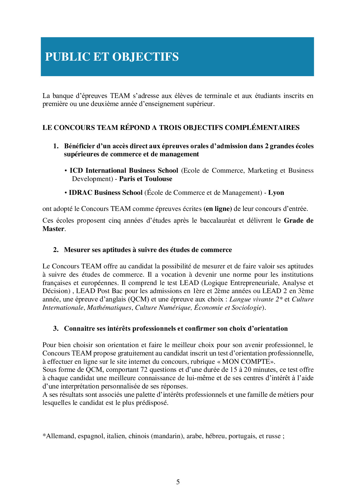 Présentation du Concours TEAM 2017-2018