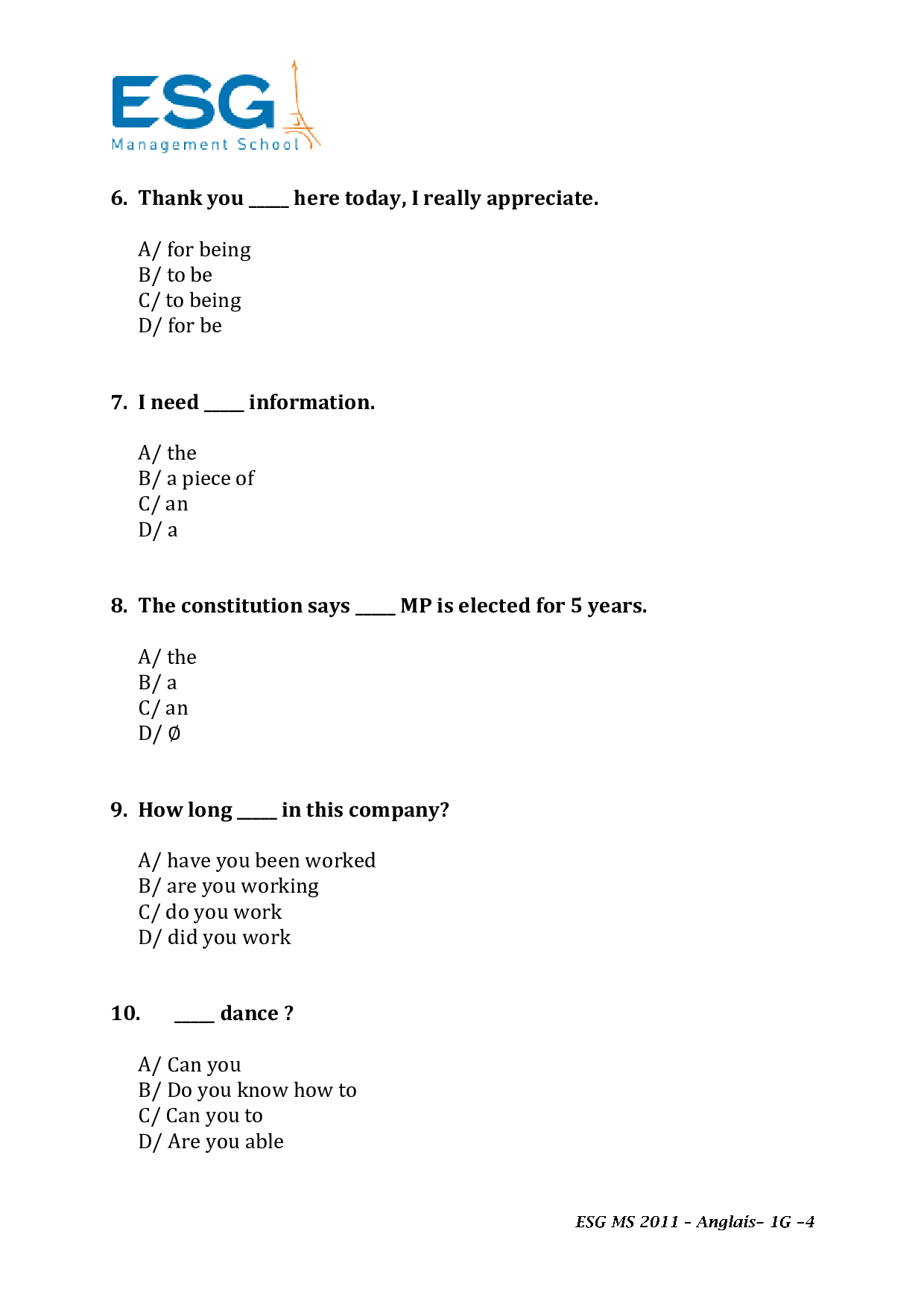 Concours LINK 2011 - Anglais (Sujet)