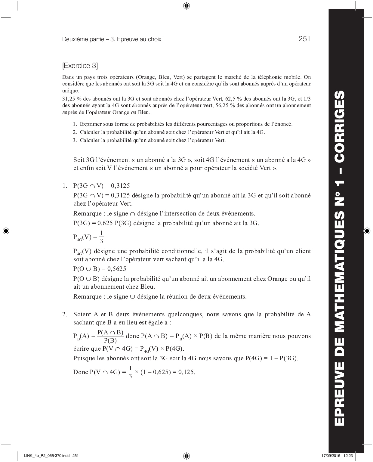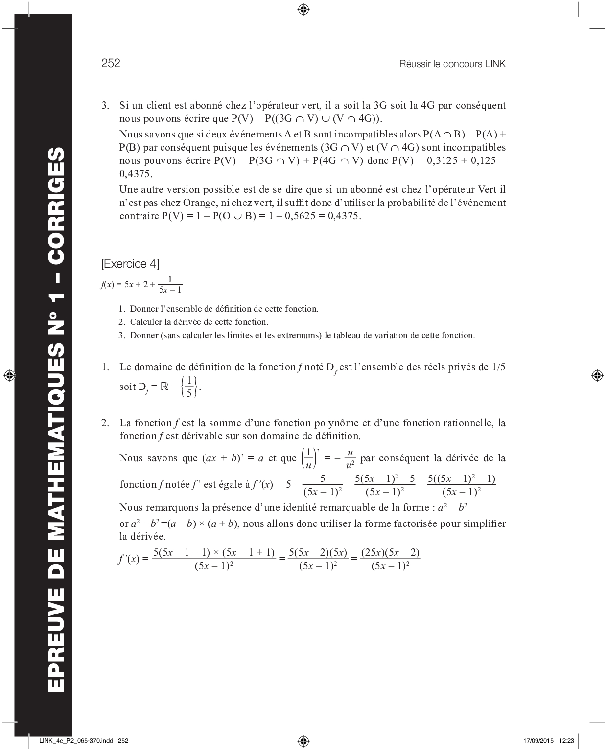 Concours LINK 2015 - Mathématiques 1 (Corrigé)