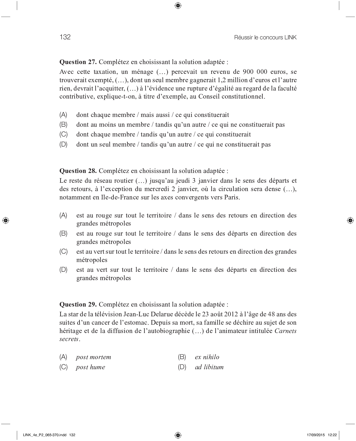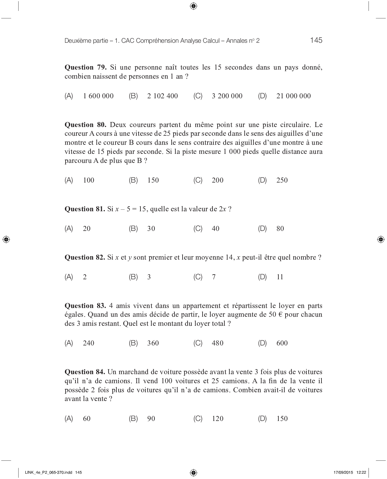 Concours LINK 2015 - CAC 2 (Compréhension, Analyse, Calcul - Sujet)
