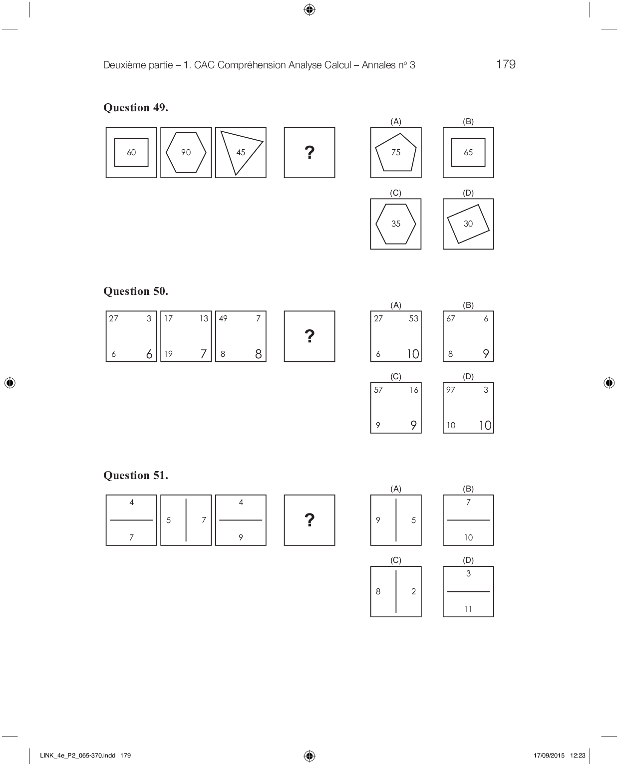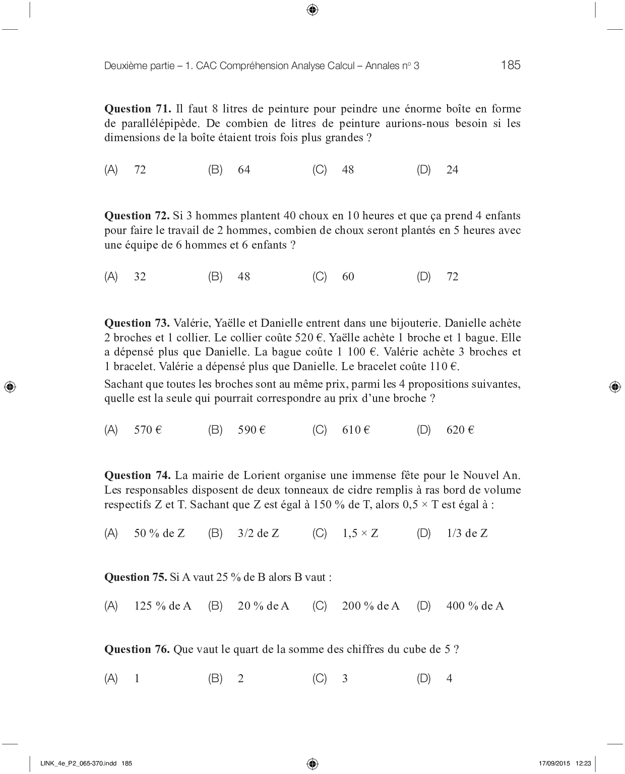 Concours LINK 2015 - CAC 3 (Compréhension, Analyse, Calcul - Sujet)
