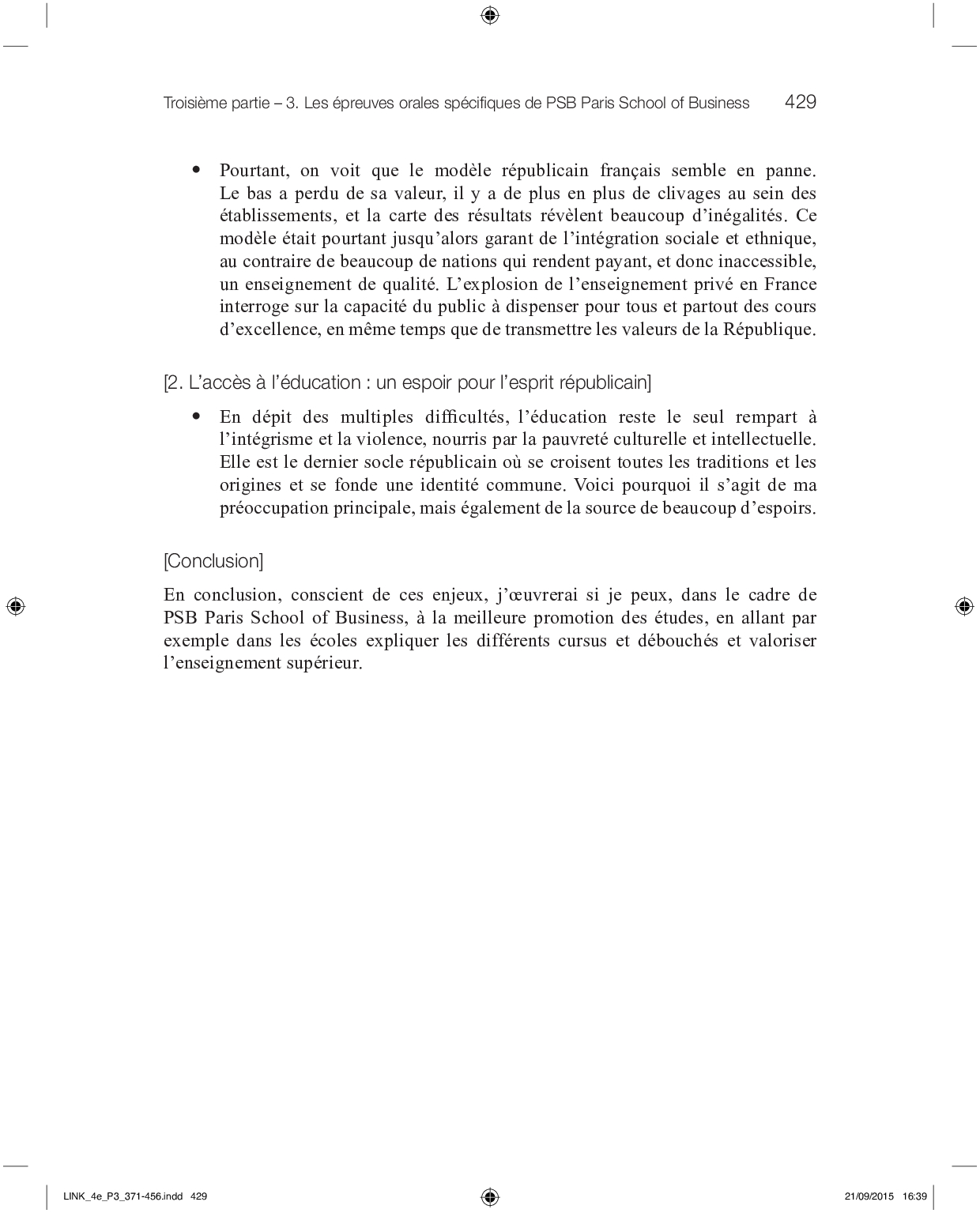 Épreuve orale specifique - PSB Paris School of Business