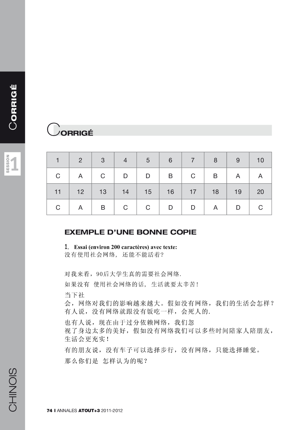 Concours ATOUT+3 2011 - Chinois 1 (Corrigé)