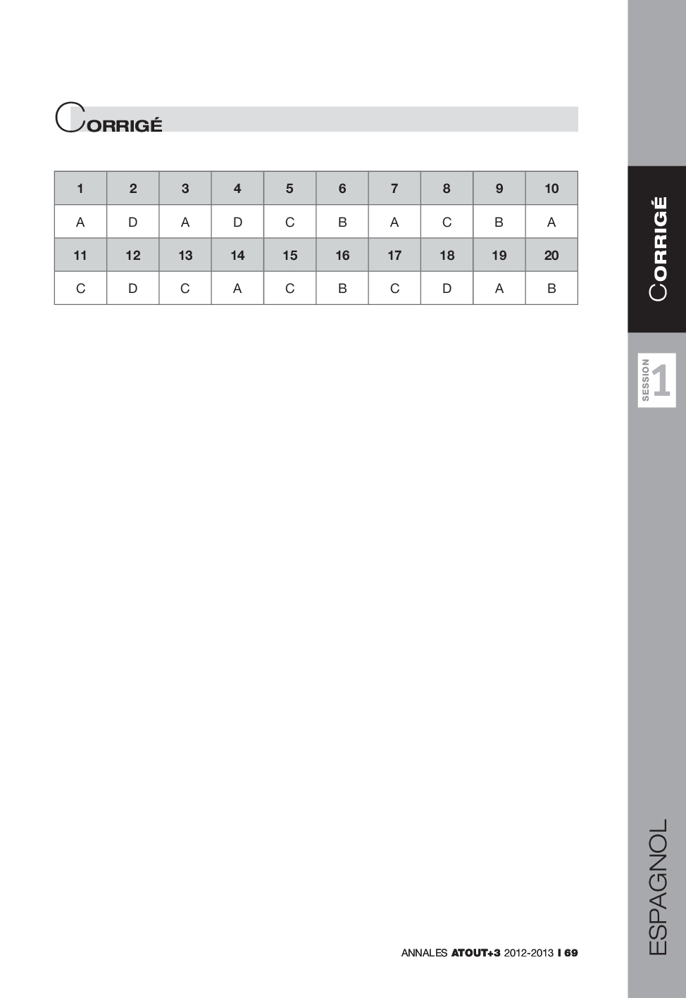 Concours ATOUT+3 2012 - Espagnol 1 (Corrigé)
