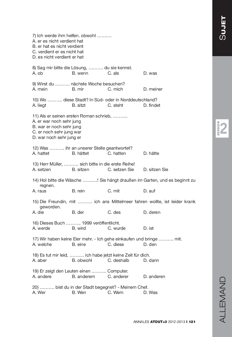 Concours ATOUT+3 2012 - Allemand 2 (Sujet)