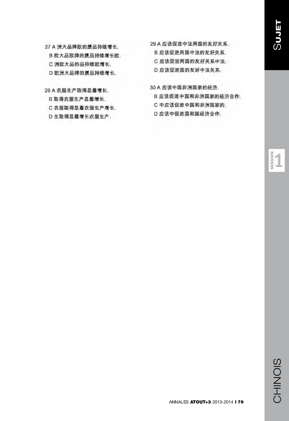 Concours ATOUT+3 2013 - Chinois 1 (Sujet)