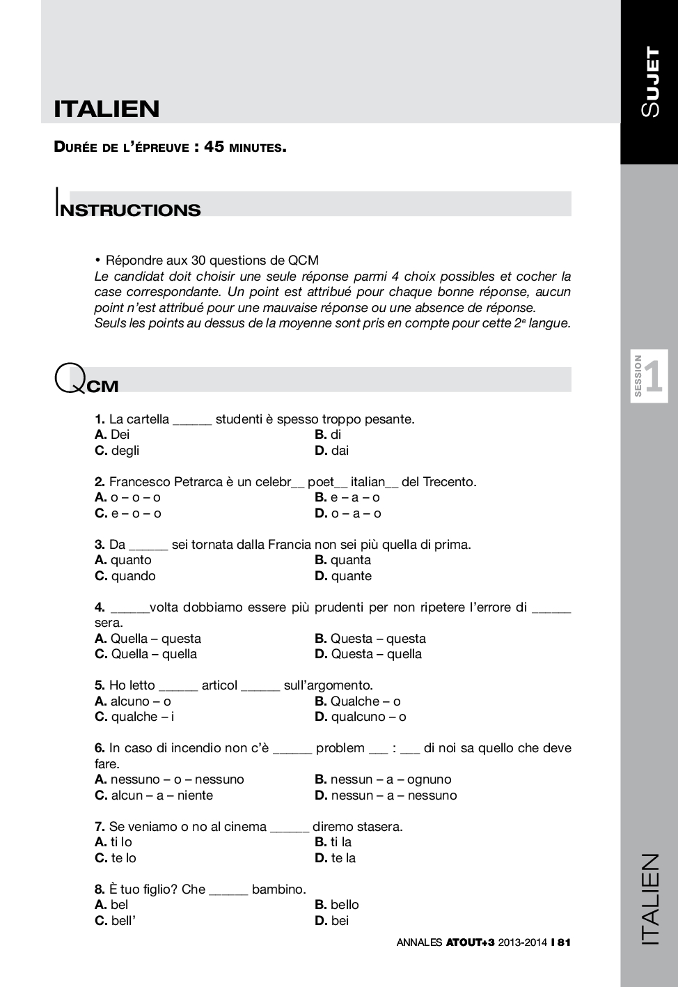 Concours ATOUT+3 2013 - Italien 1 (Sujet)