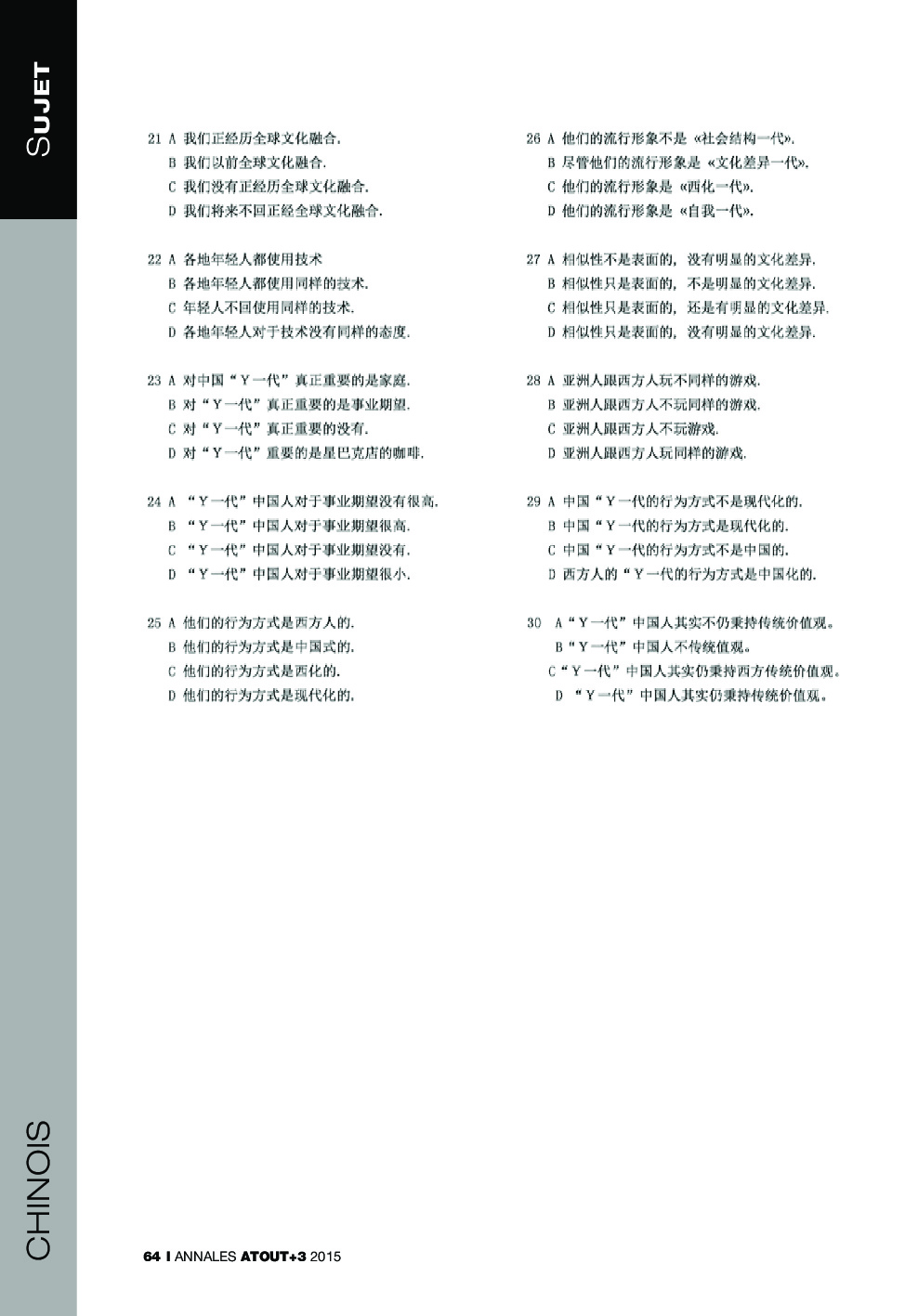 Concours ATOUT+3 2015 - Chinois (Sujet)
