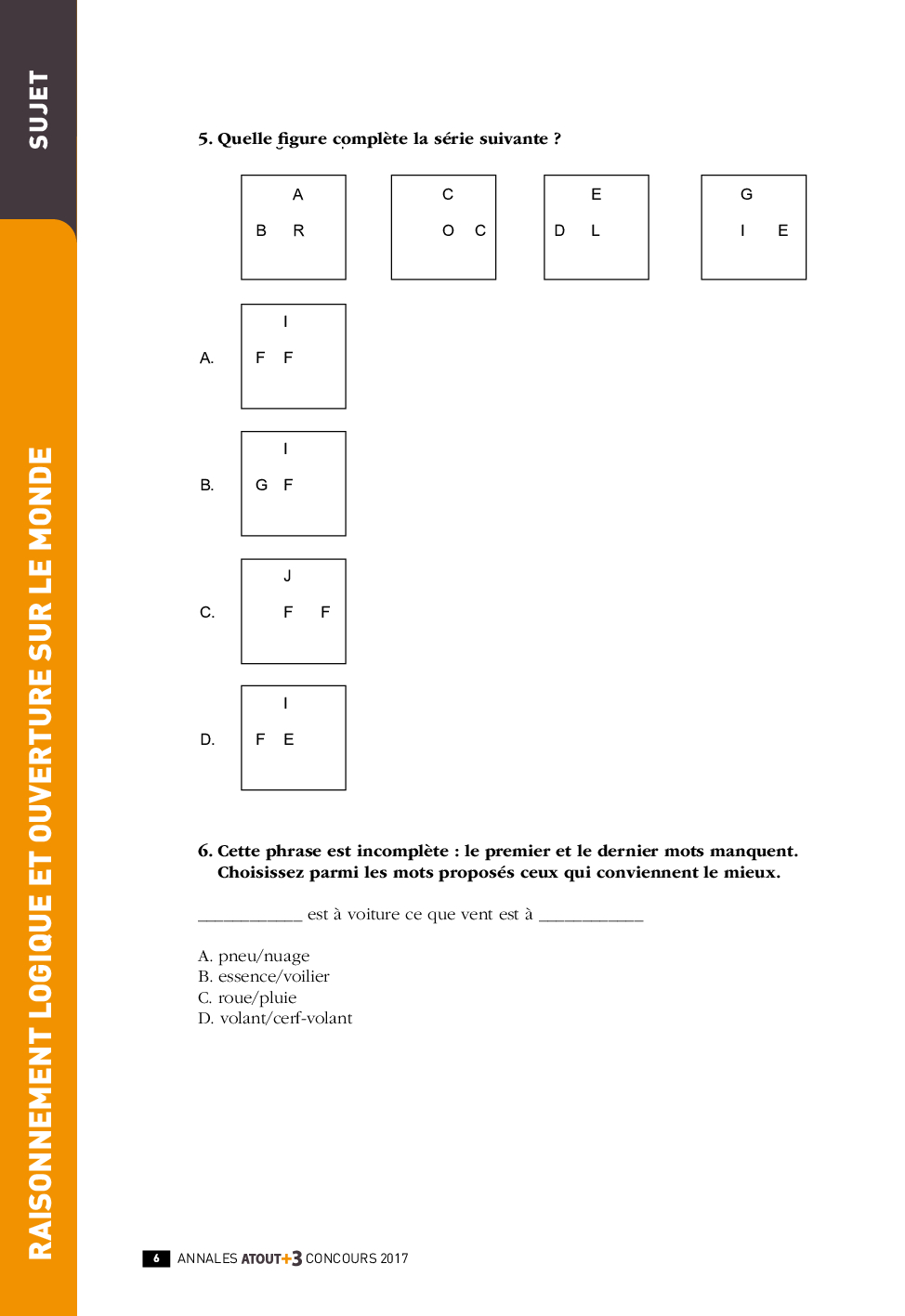 Concours ATOUT+3 2017 - Logique et ouverture au monde 1 (Sujet)
