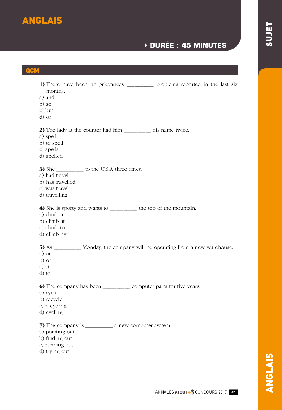 Concours ATOUT+3 2017 - Anglais 2 (Sujet)