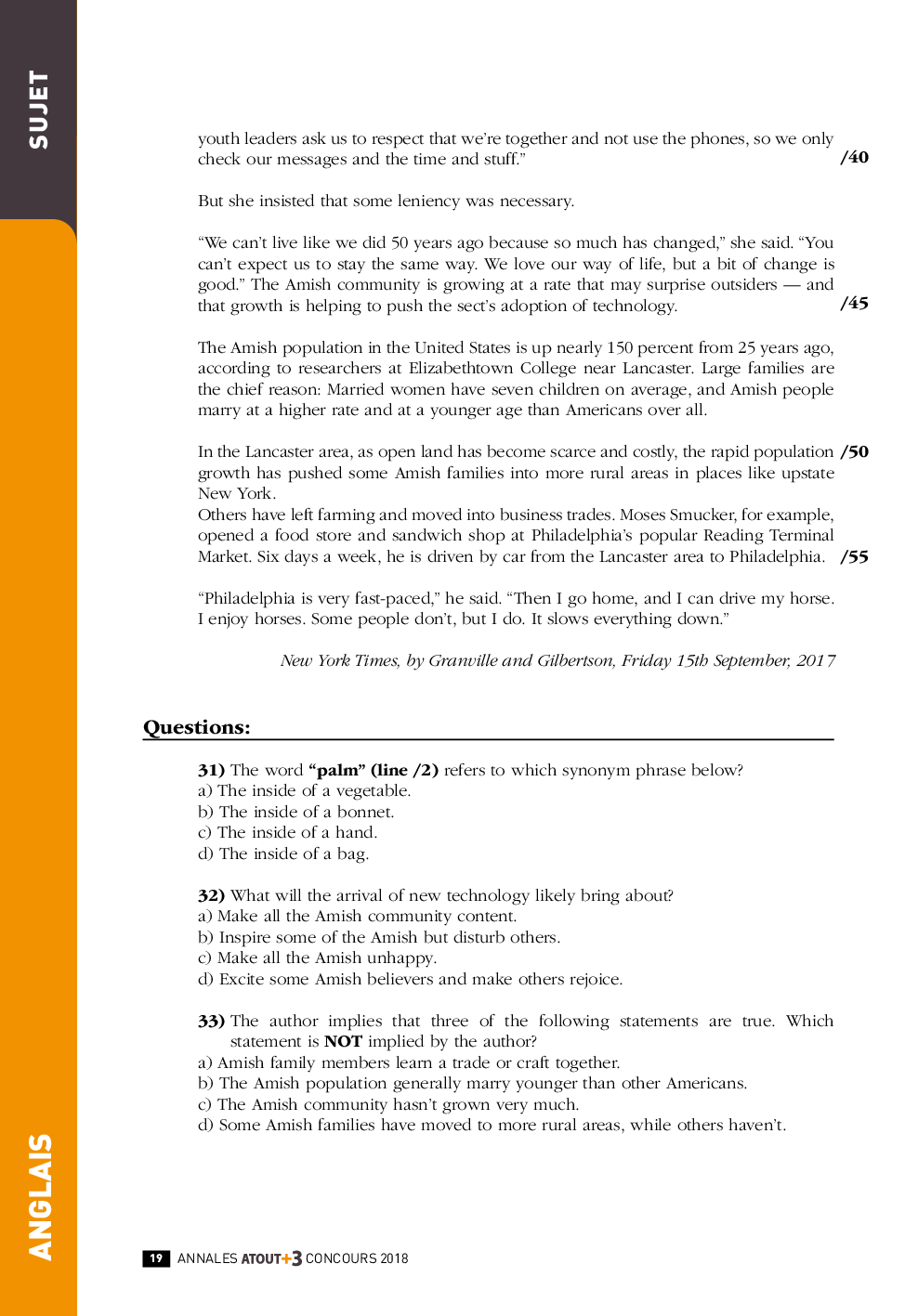 Concours ATOUT+3 2018 - Anglais 1 (Sujet)