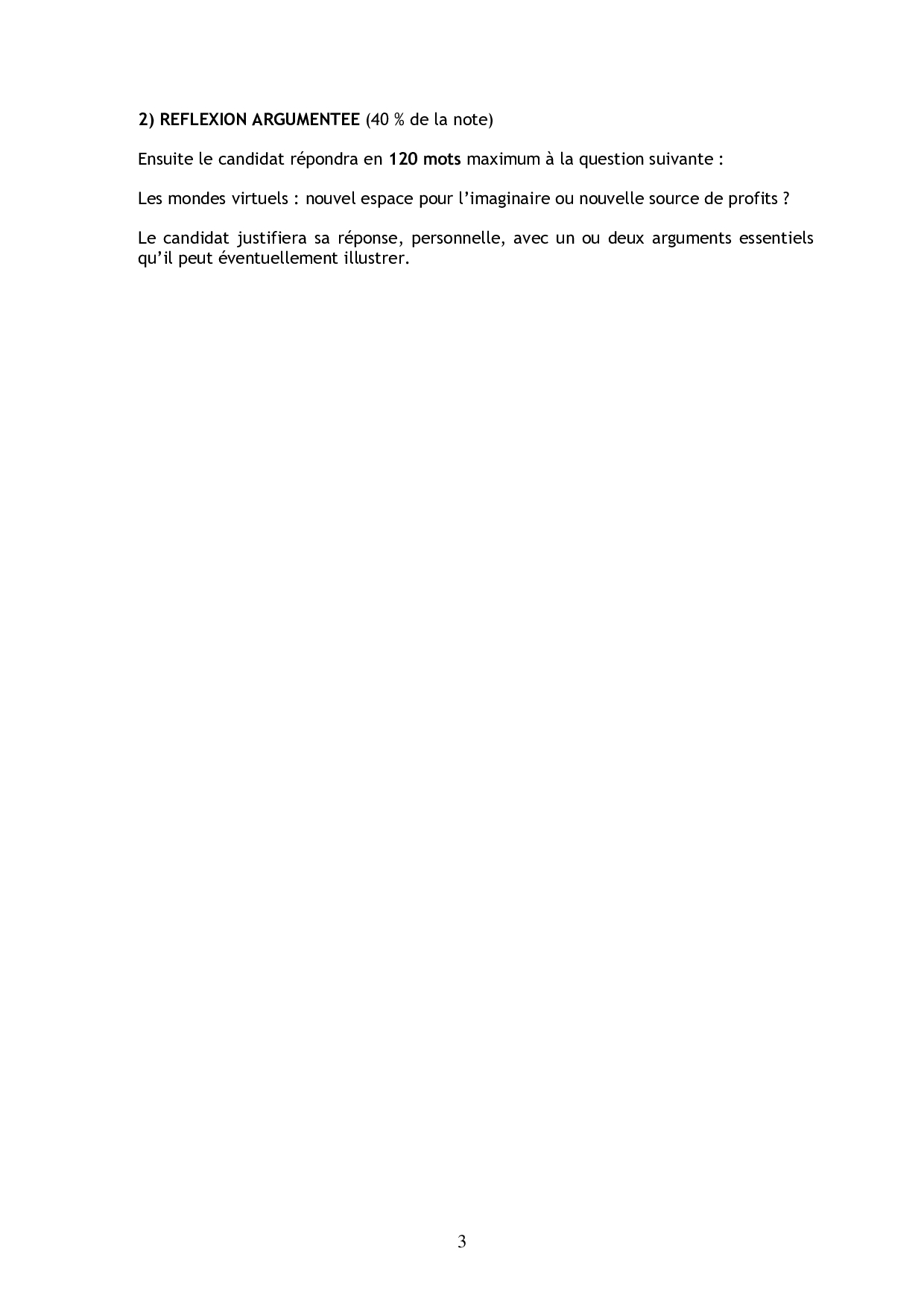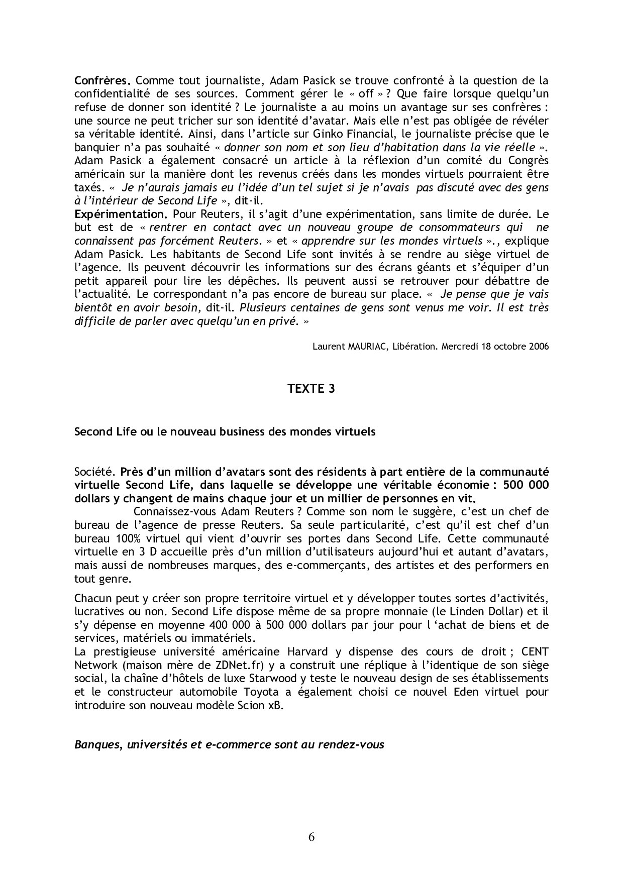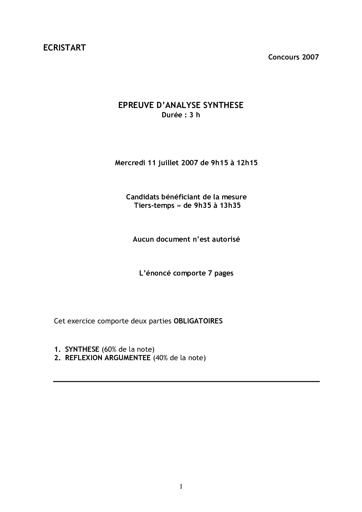 Concours Ecricome Bachelor 2007 - Analyse et synthèse 2 (Sujet)