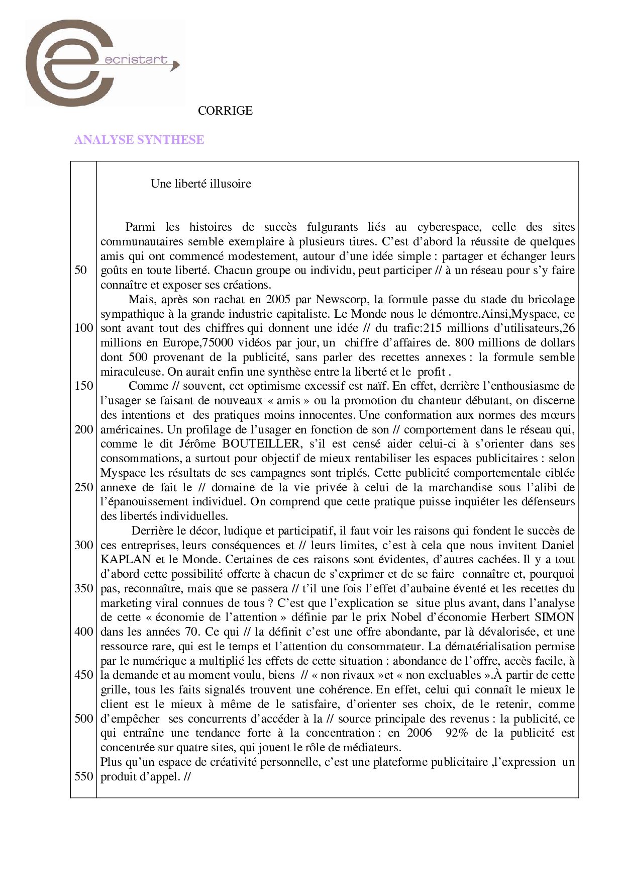 Concours Ecricome Bachelor 2008 - Analyse et synthèse (Corrigé)