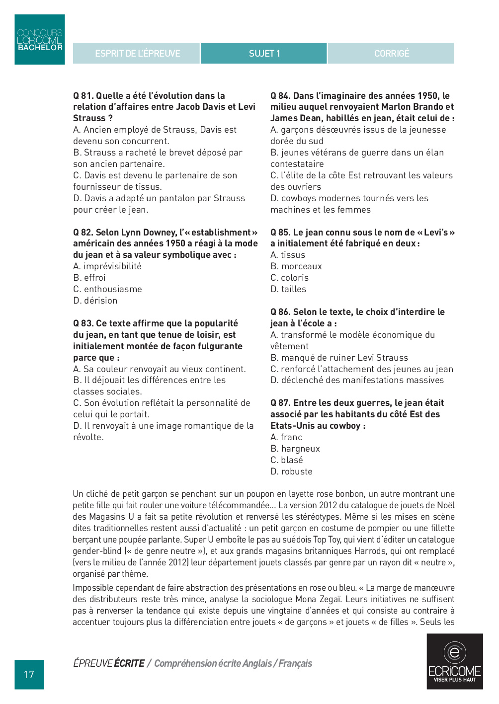 Concours Ecricome Bachelor 2013 - Compréhension écrite anglais français 1 (Sujet)