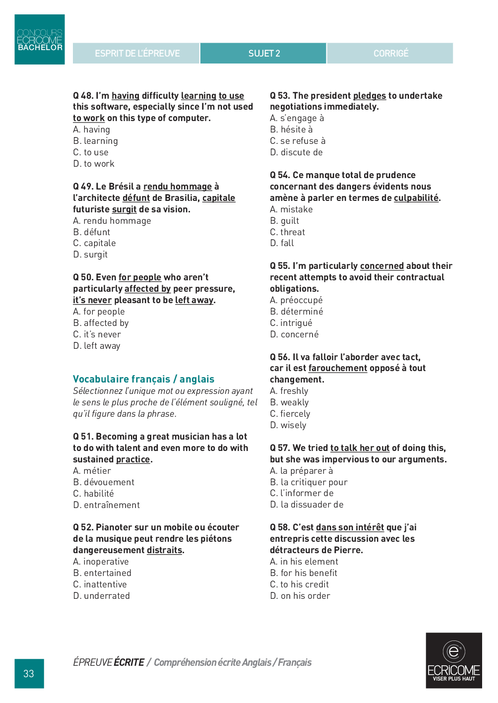 Concours Ecricome Bachelor 2013 - Compréhension écrite anglais français 2 (Sujet)