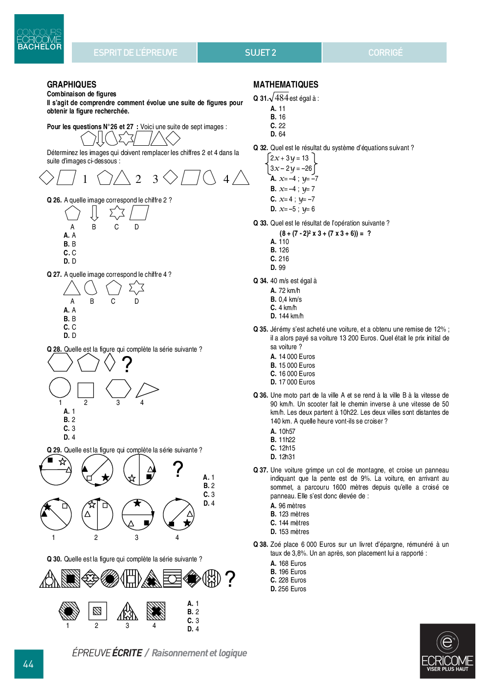 Concours Ecricome Bachelor 2013 - Raisonnement et logique 2 (Sujet)