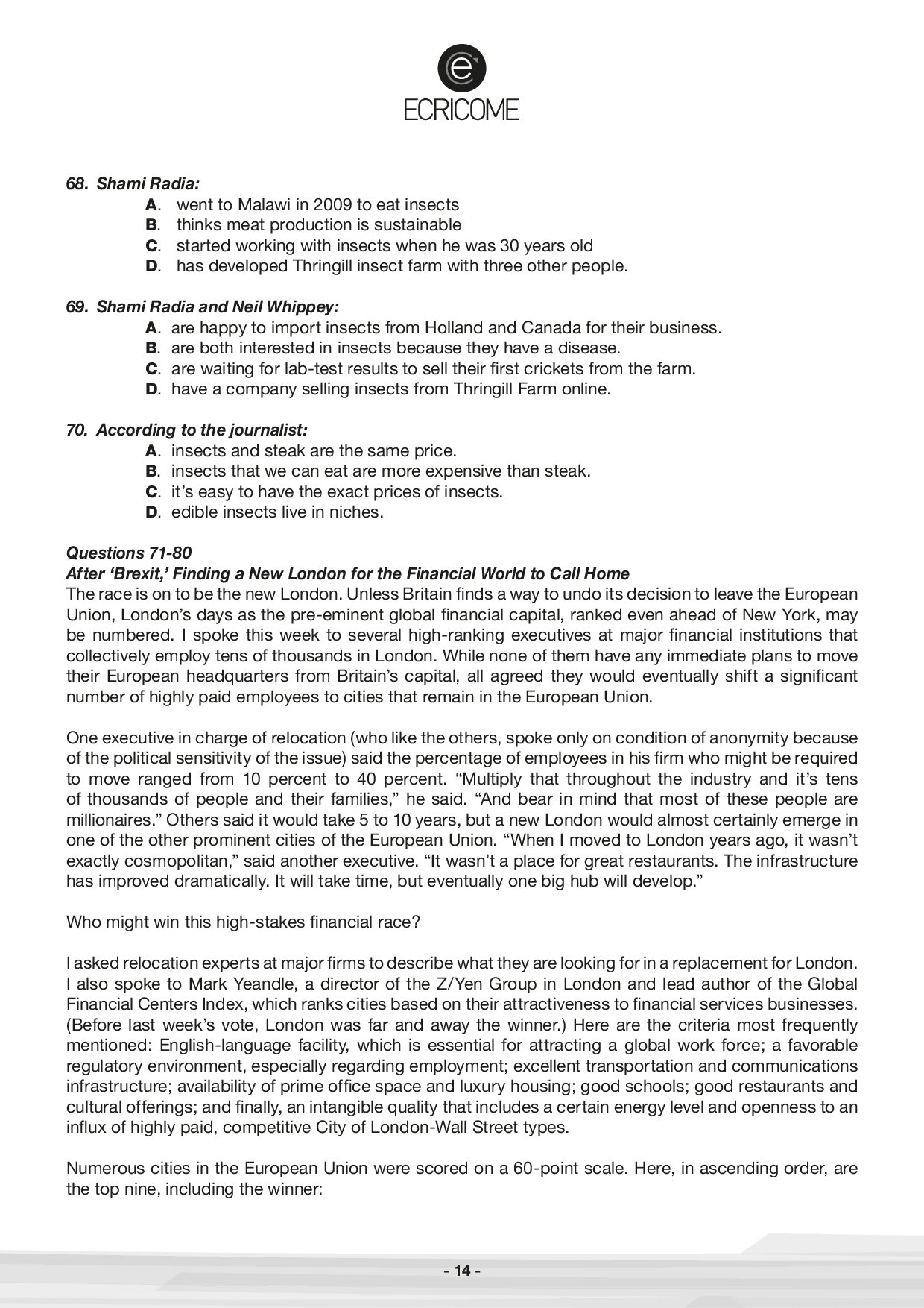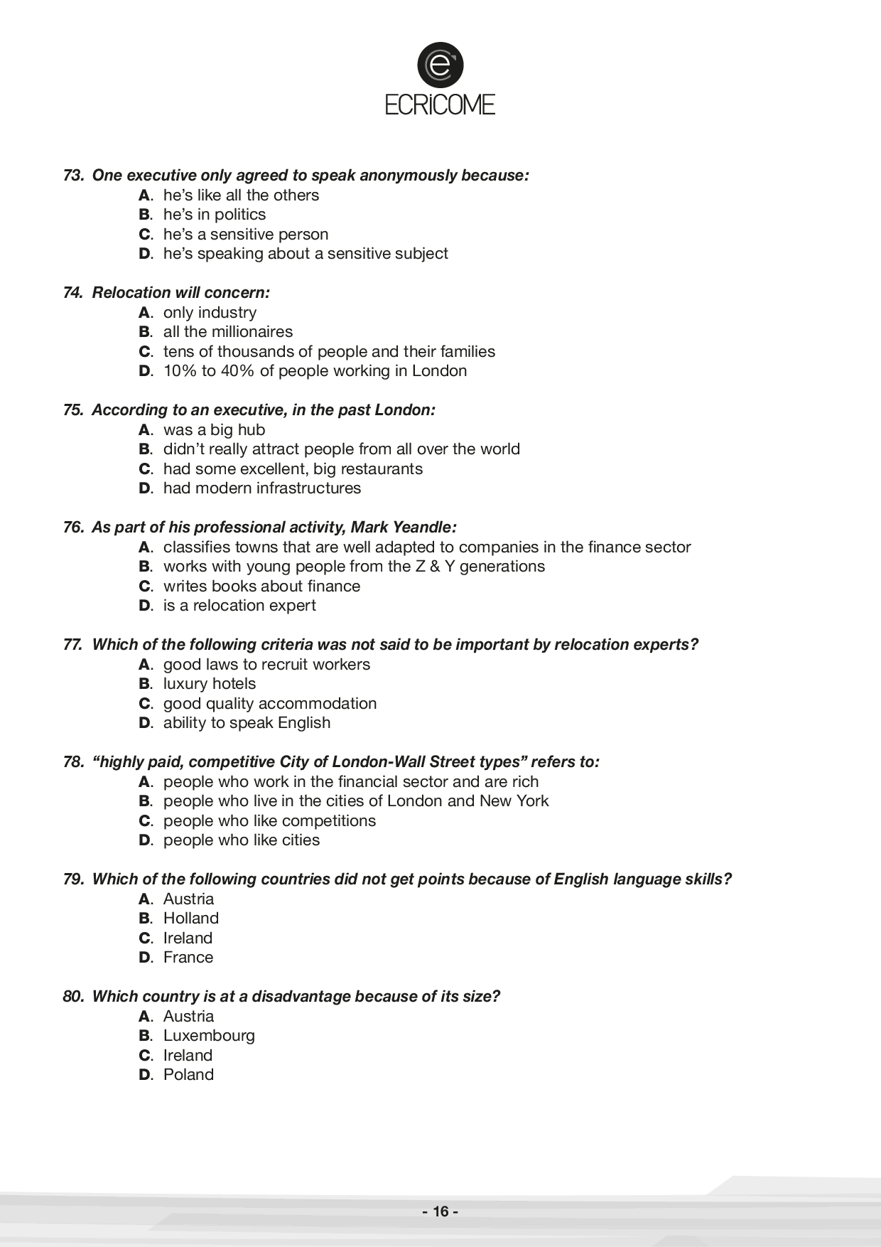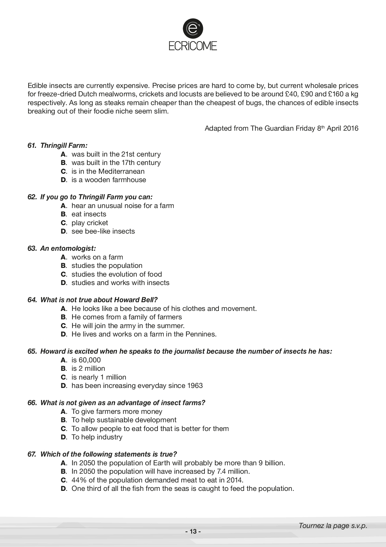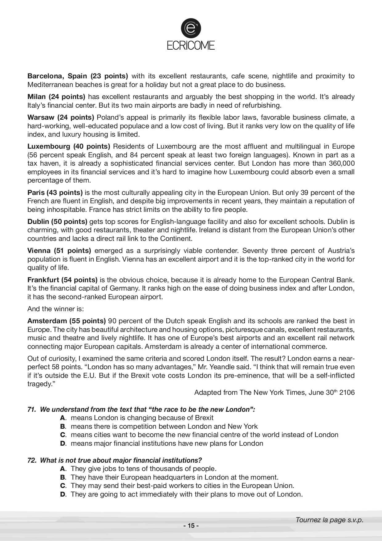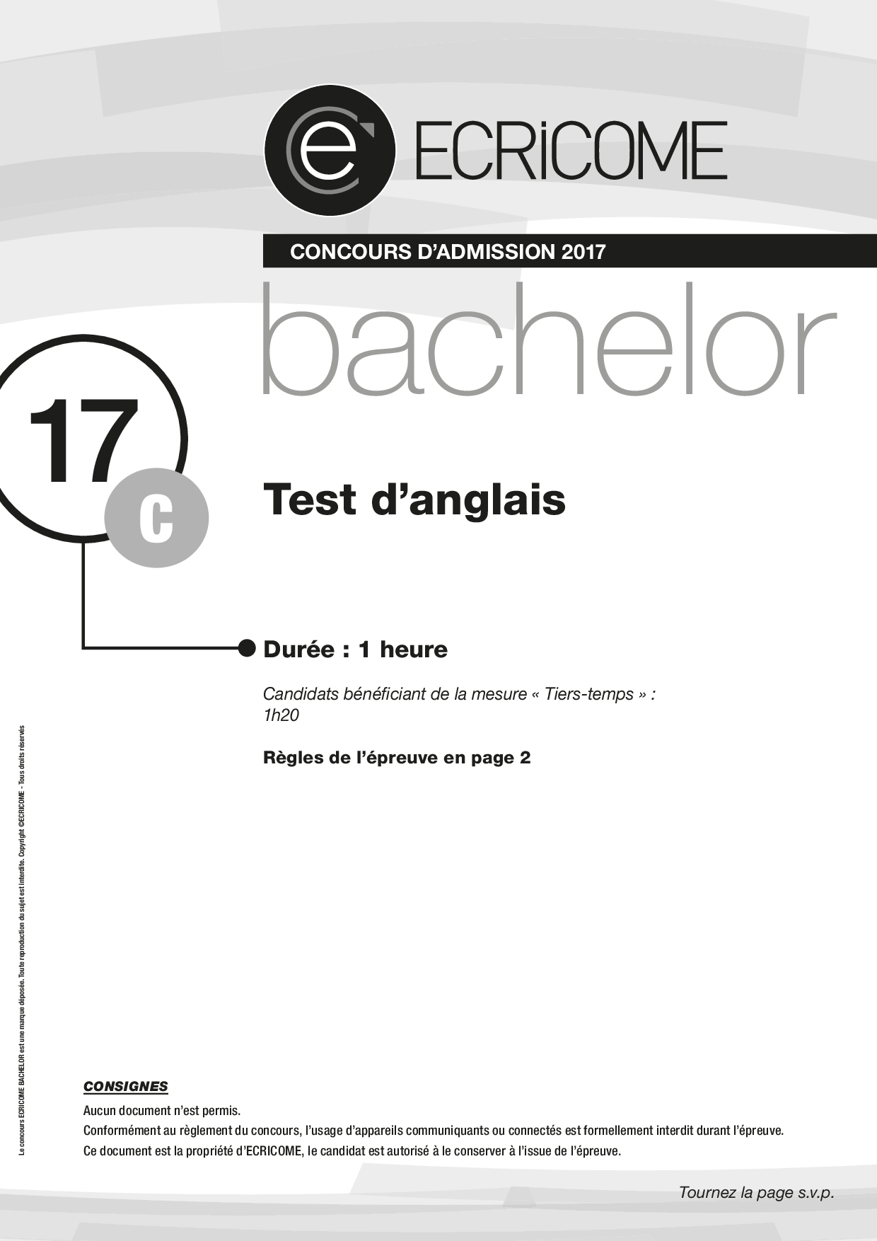 Concours Ecricome Bachelor 2017 - Anglais 3 (Sujet)