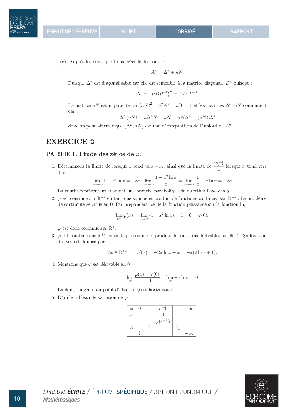 Concours Ecricome Prépa 2011 - Mathématiques (Option économique - Corrigé)