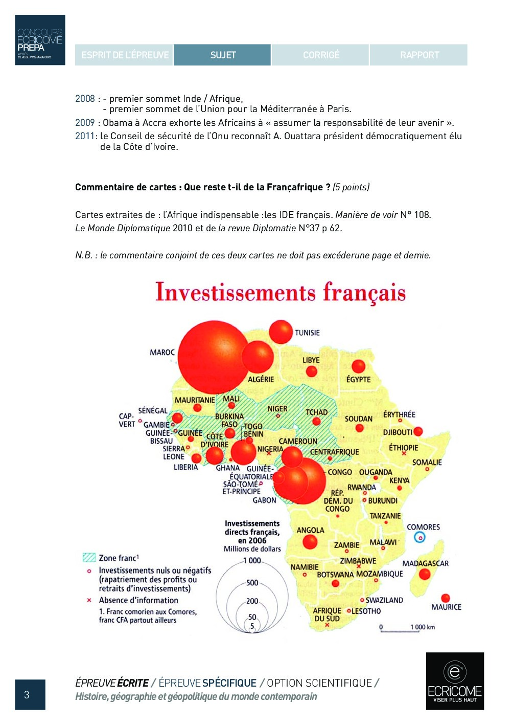 Concours Ecricome Prépa 2011 - Histoire, géographie et géopolitique du monde contemporain (Sujet)