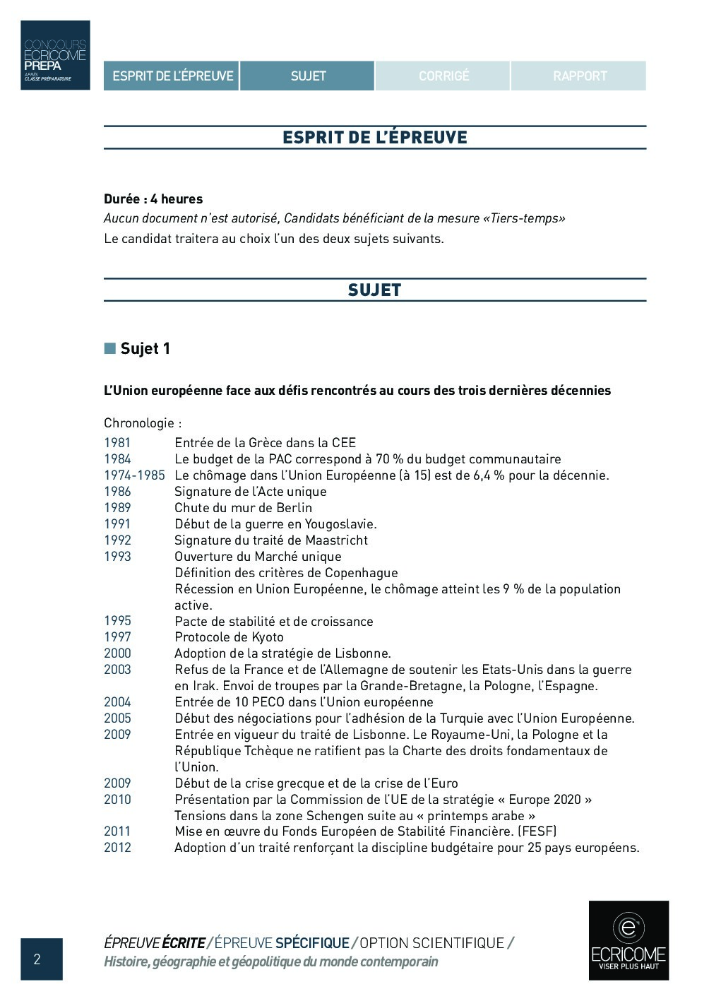 Concours Ecricome Prépa 2012 - Histoire, géographie et géopolitique du monde contemporain (Sujet)