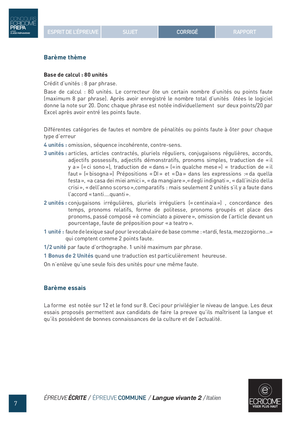 Concours Ecricome Prépa 2012 - Italien LV2 (Corrigé)